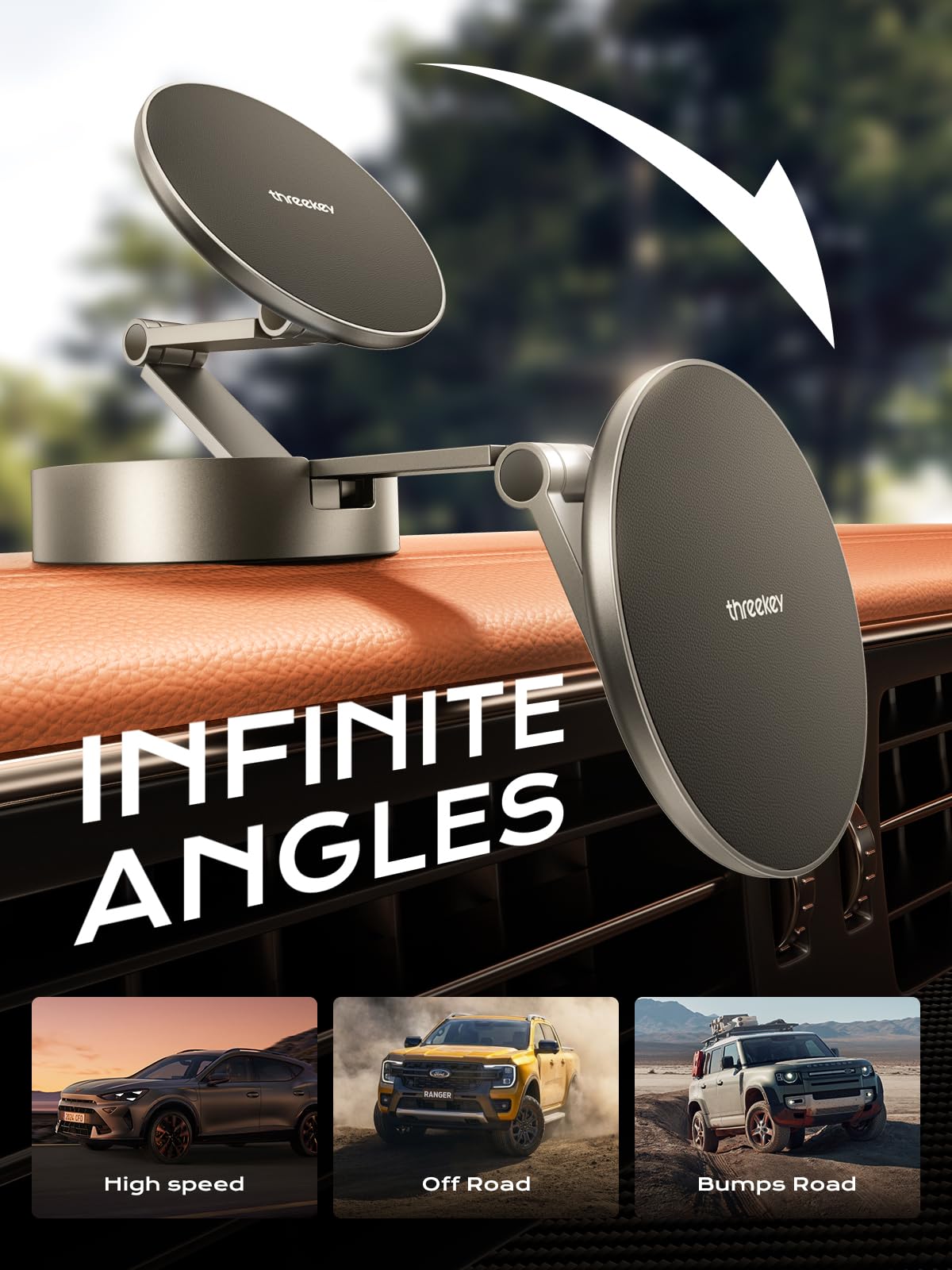 Threekey For Magsafe Car Phone Mount, Magnetic Phone Holder For Car With Metal Arm & 360Rotation, Strong Magnets Car Phone Holde