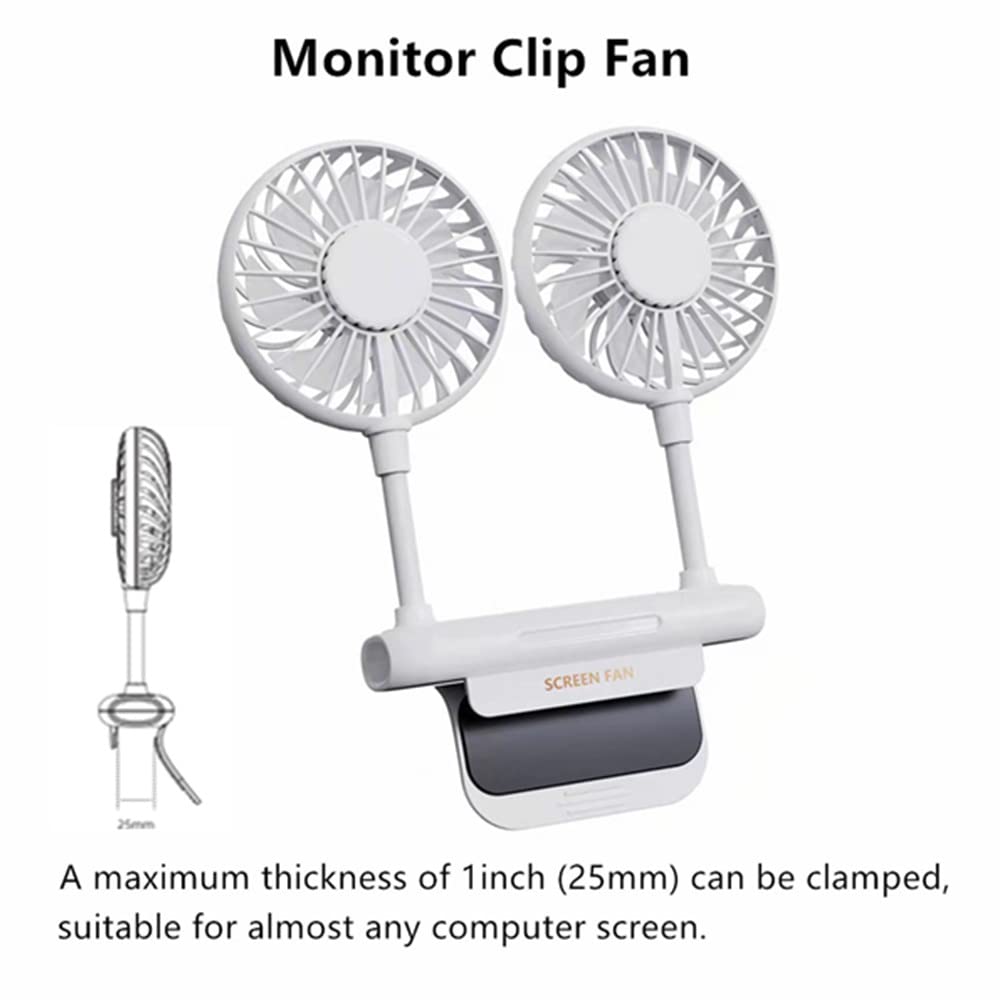 Thrrly Monitor Clip On Fan With 2 Fan Heads. Need A Little Fan For Office? No More Space On Desk? This Monitor Clip On Fan Is A Good Choice For You. Product Features: 1.Two Fans Design - The Wind Speed Is Twice That Of Other Similar Fans. 2.Save Space - Just Clip Our Screen Fan On Top Of The Monitors, It Won'T Take Up Your Desk Space. This Office Fan Is A Perfect Alternative To Bulky Desk Fan, Personal Fan, Etc. 3. Strong Grip Clamp - Up To 1 Inches (25Mm) Maximum Clip Opening, Easily Clips On Almost Any Computer Screen And Other Suitable Locations Within This Thickness. 4. 3-Speed Settings - Soft Wind - Normal Wind - Strong Wind. Adjust Appropriate Fan Speed By Pressing The Power Button Repeatedly. 5. 360 Rotation - The Desktop Fan Head Can Be 360 Vertical And Horizontal Rotation, Keep You Enjoy The Cool Air From Any Directions. 6. Usb-Powered- The Clip Fan Has A 6.5Ft Cord(Undetachable), It'S Compatible With Many Usb Devices, Such As Laptop, Desktop Pc,Power Bank, Phone Adapter, Usb Outlet,Etc. What'S In The Box? 1 Portable Monitor Fan 1 6.5Ft Screen Fan Integrated Data Cable 1 User Manual A Good Gift Thrrly Portable Screen Fan For Office Is A Good Gift For Your Own, Parents, Lovers, Children And Friends. Let Them Enjoy The Cool Wind In Hot Weather And Make Study And Work More Efficient.