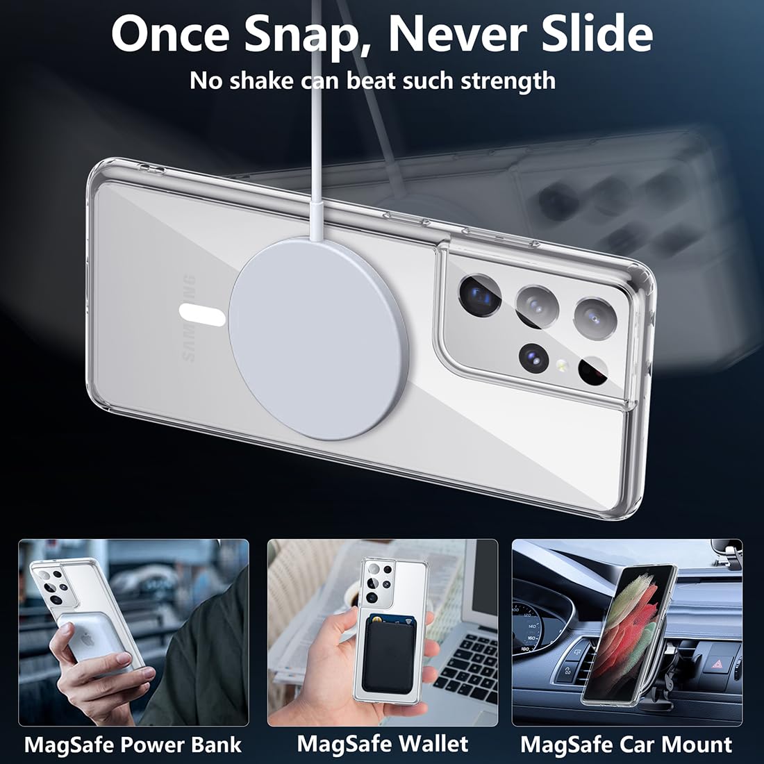 Q: Is the TIANNIUKE Magnetic Case compatible with MagSafe accessories?A: Yes, the TIANNIUKE Magnetic Case for Samsung Galaxy S21 Ultra is designed to be fully compatible with MagSafe accessories. It provides automatic adsorption and seamless alignment for efficient and stable charging.