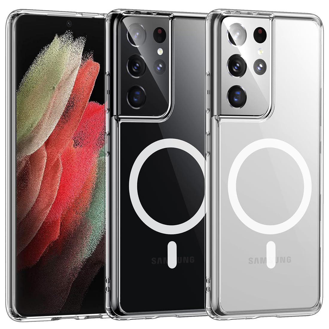 Q: What materials is the TIANNIUKE Magnetic Case made from?A: The case is made from silicone, which is 100% pure and clear, providing a stylish look while ensuring strong protection. This material enhances the overall aesthetic of your Galaxy S21 Ultra, making it appear more elegant.
