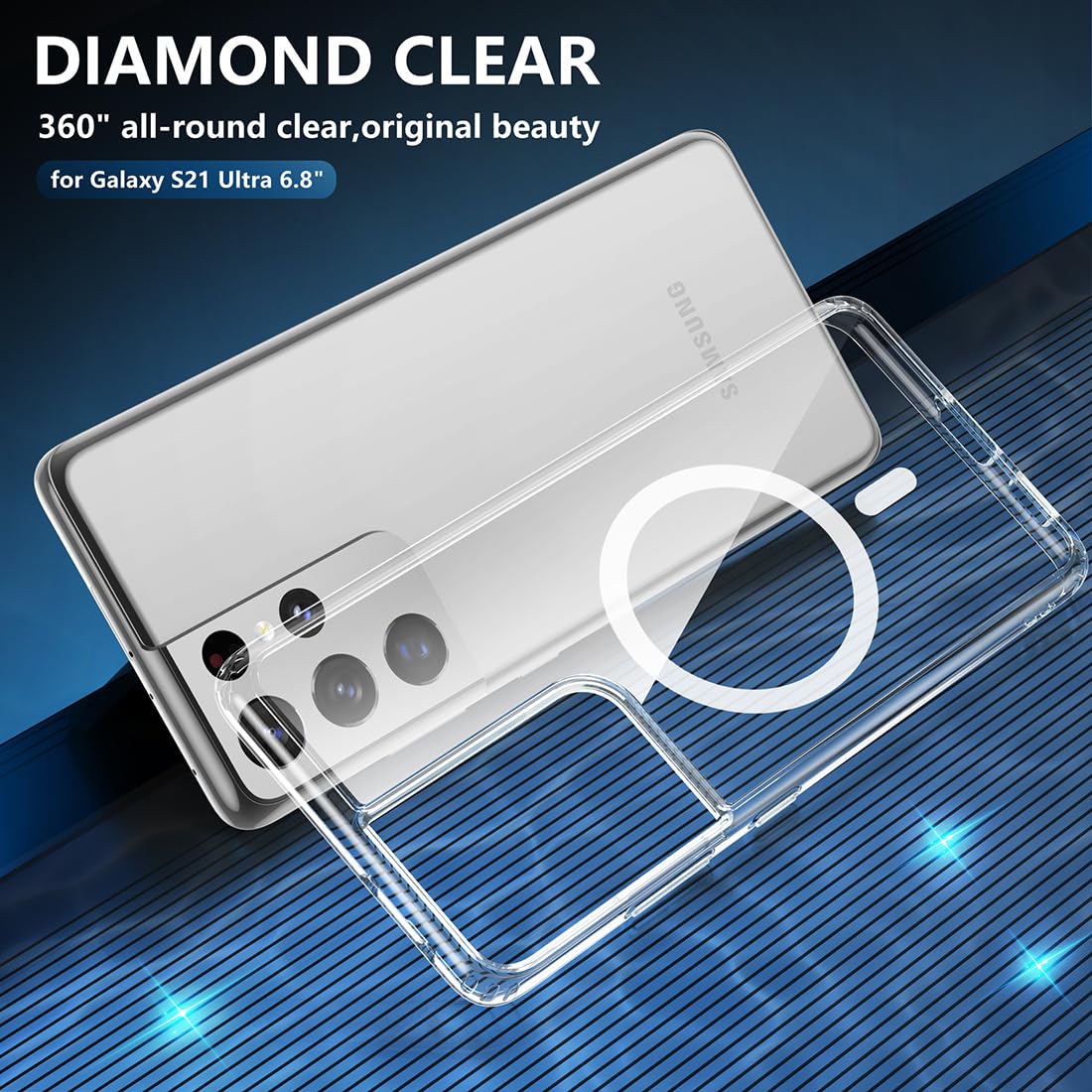 Tianniuke Magnetic Case For Samsung Galaxy S21 Ultra, Transparent And Yellow Resistant,Compatible With Magsafe,Slim Fit Shockpro
