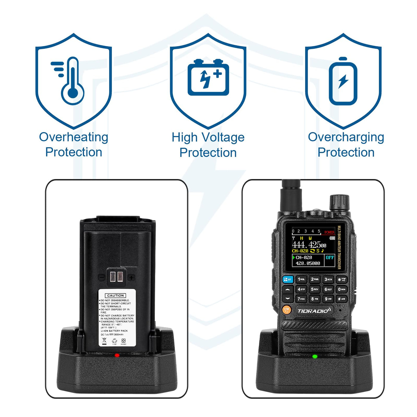 Tidradio Td-H3 Ham Radio8-Bands Long Range Walkie Talkies 2500Mah Rechargeable Handheld Portable Two Way Radios Air Bandfrequency Copyusb C Charger &Amp; Programming(2 Pack)Built-In Chipwireless Frequency Replication