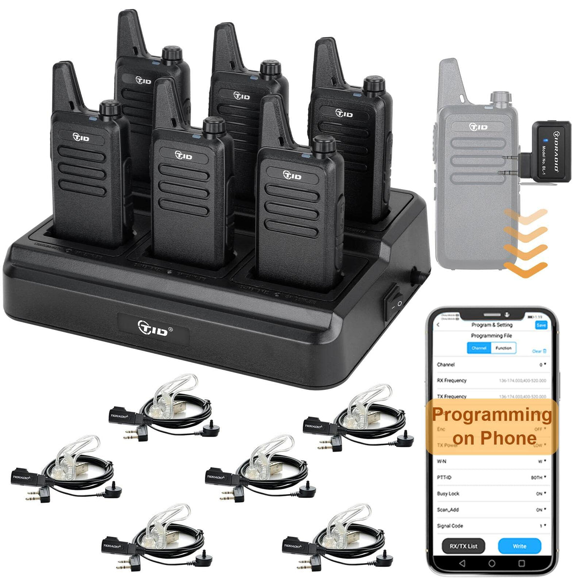 Tidradio Td M8S Radios Walkie Talkies For Adults Long Range,Rechargeable Two Way Radio With Earpieces,6 Way Multi Gang Charger And Wireless Programmer,For School Church Restaurant Business (6 Pack)