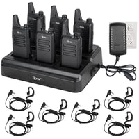 Tidradio Td-M8S Radios Walkie Talkies Rechargeable Two Way Radio (6 Pack) License-Free Frs Radio With 6 Way Multi Gang Charger Usb Charger 2 Way Radio
