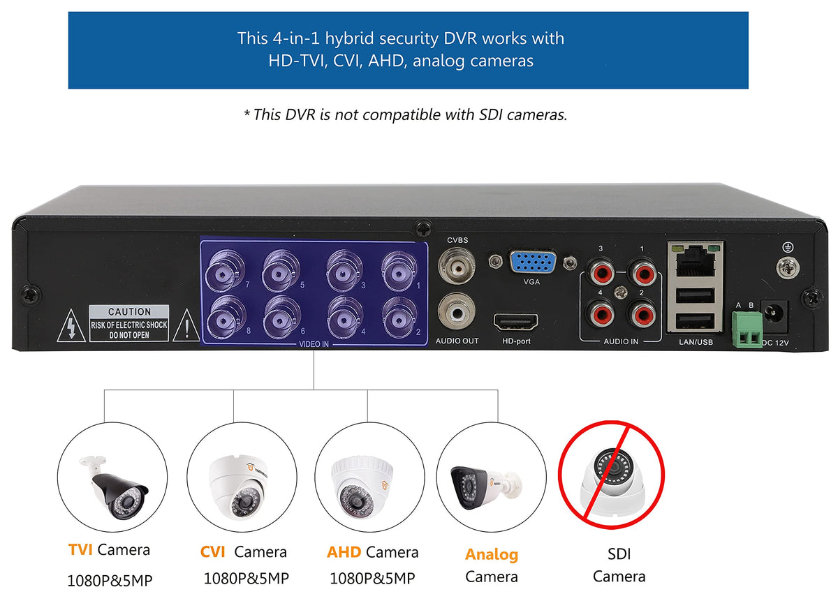 Tigersecus Latest State-Of-The-Art Surveillance Technology Is The 5 Megapixels (5Mp) Super Hd, The Highest Resolution In Our Range And Is 2.4X Better Than 1080P Full Hd. This 5Mp Universal Security Dvr/Nvr Is A Full Featured Hybrid Digital Video Recording System Compatible With Multiple Security Cameras Including 5Mp Hd-Tvi, Ahd, And Cvi. Use This Dvr With Tigersecu Security Cameras For Optimal Performance. Remotely Access And Play Surveillance Footage And Control The Security Dvr With No Contract Or Monthly Fees With Tigersecus Hd Viewer App. For Optimal Performance, 1 Mbps Upload Speed Is Recommended For Each 1080P Camera. Bitrate Settings Can Be Adjusted In The Dvr To Accommodate Slower Network Speeds. Mobile App Requires Ios 9.3 Or Later And Android 9 Or Later. Compatible With Iphone And Ipad. Pre-Installed New 2Tb Surveillance Hard Drive Provides 10+ Days Of Continuous Local Recording At The Highest Resolution. Option To Replace Internal Drive With A Larger One Of Up To 16Tb. Motion Detection Options Allow Recording Only When Motion Is Detected To Save Hard Drive Space. Unique Heat Sink Fan Technology Enables The Dvr To Self-Cool And Prevent Overheating, Which Means No Fan Noise And A Quieter System. 4 Channels Of Audio Recording In Addition To 8 Channels Of Video Recording. Allows 3 Monitor Connections Through Hd-Port/Vga/Cvbs Ports.