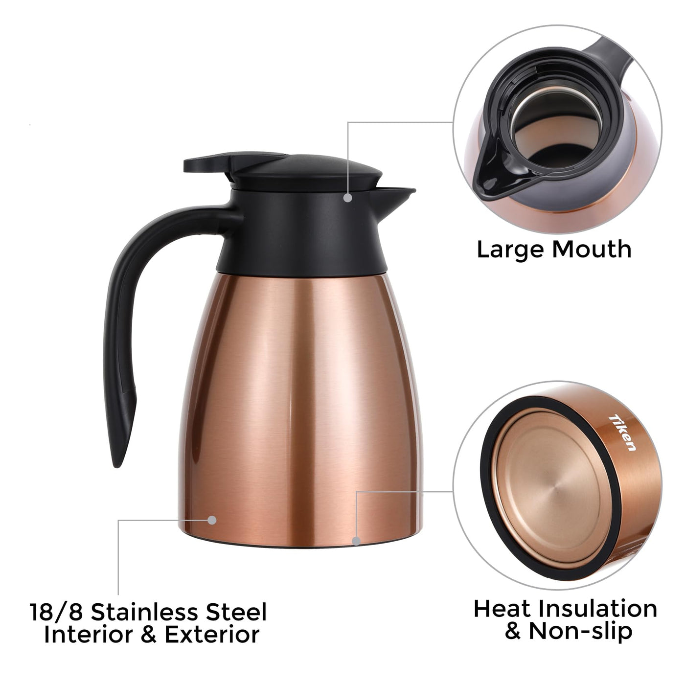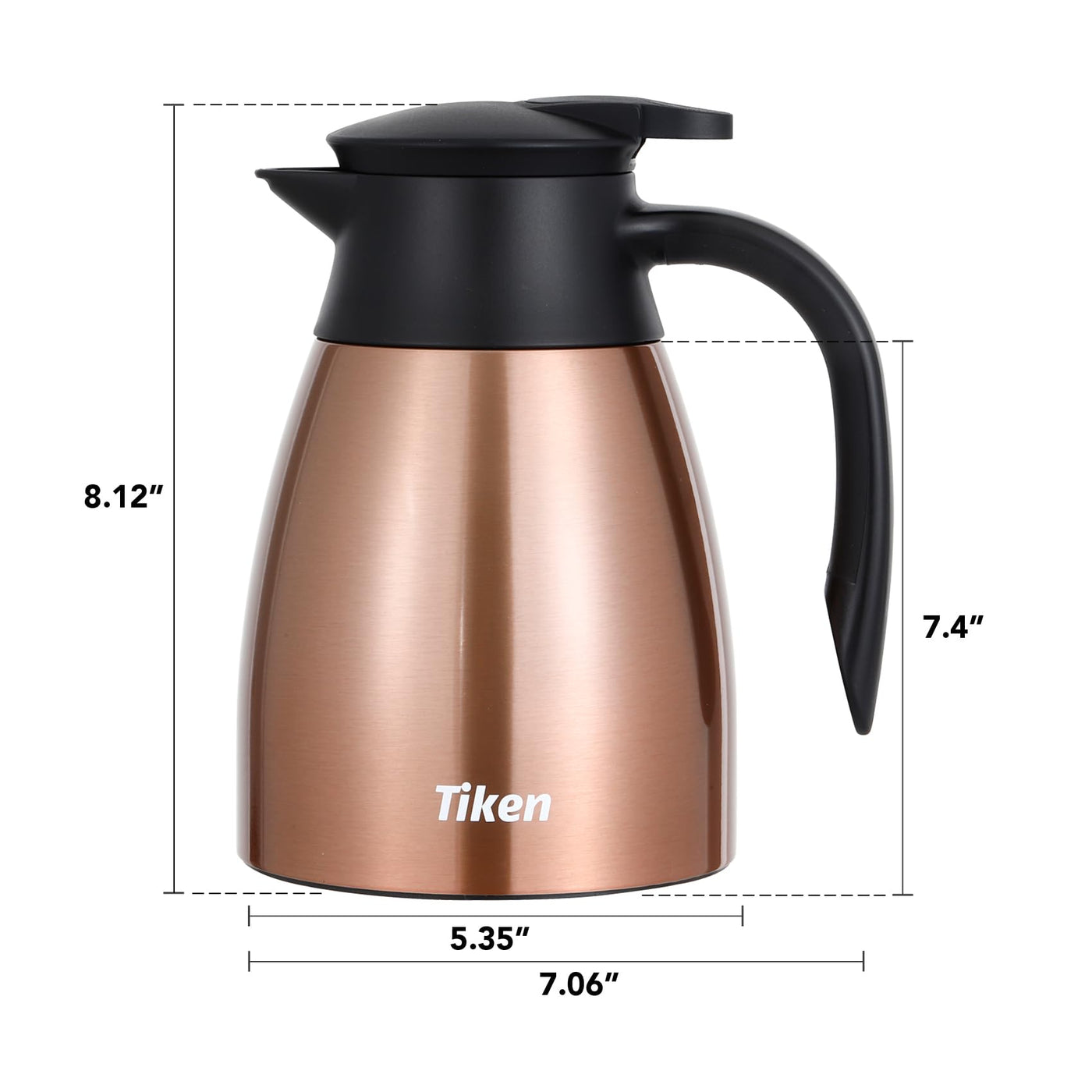Tiken 34 Oz Thermal Coffee Carafe, Stainless Steel Insulated Vacuum Coffee Carafes For Keeping Hot, 1 Liter Beverage Dispenser (