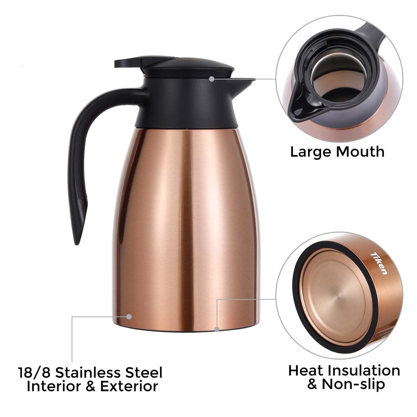 Tiken 51 Oz Thermal Coffee Carafe, Stainless Steel Insulated Vacuum Coffee Carafes For Keeping Hot, 1.5 Liter Beverage Dispenser