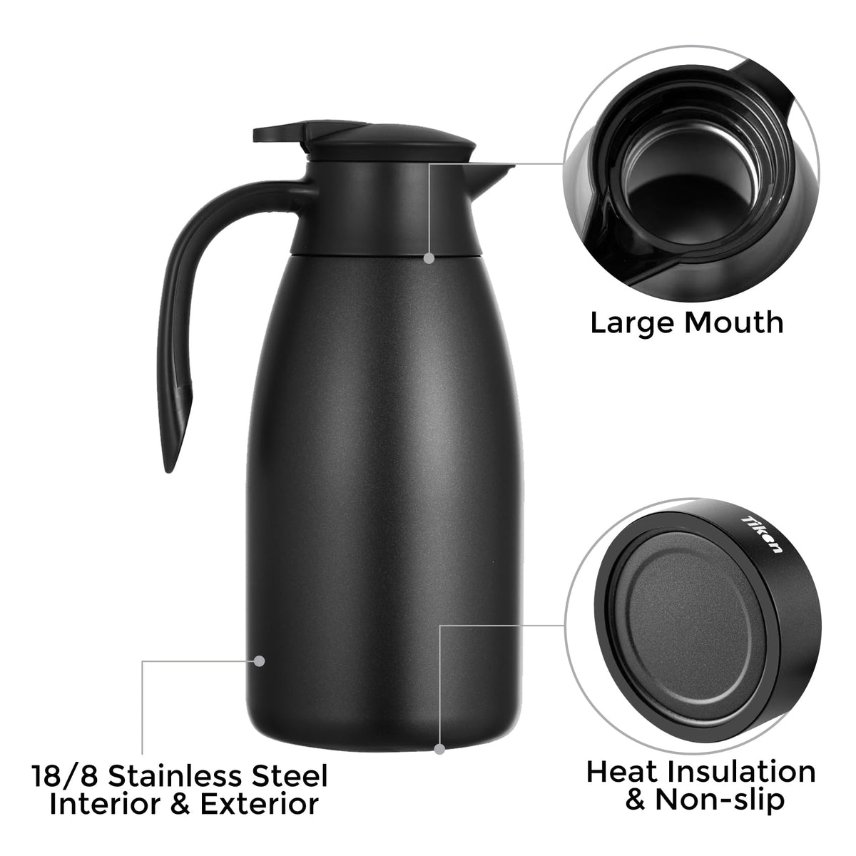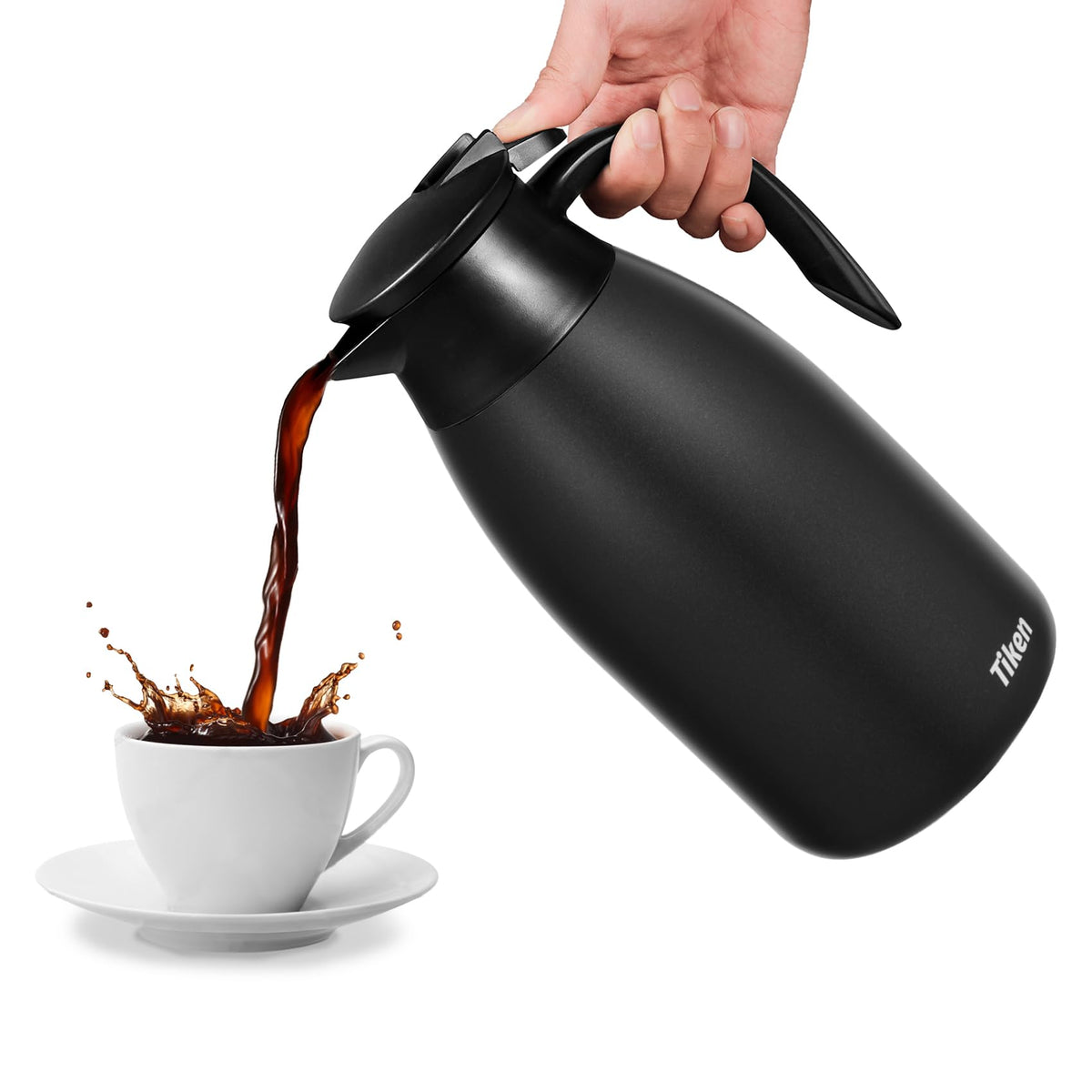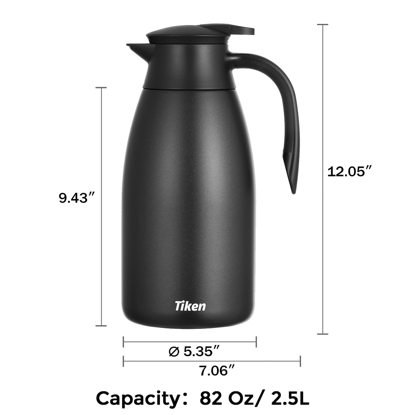 Tiken 85 Oz Thermal Coffee Carafe, Stainless Steel Insulated Vacuum Coffee Carafes For Keeping Hot, 2.5 Liter Beverage Dispenser
