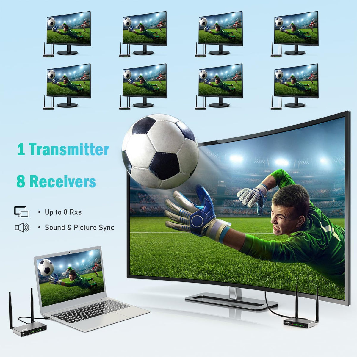 Timbootech Wireless Hdmi Transmitter And Receiver 820Ft, Up To 8 Receivers, Kvm, Ir Remote, Hdmi Loop Out, 5.8G Hdmi Wireless Ex