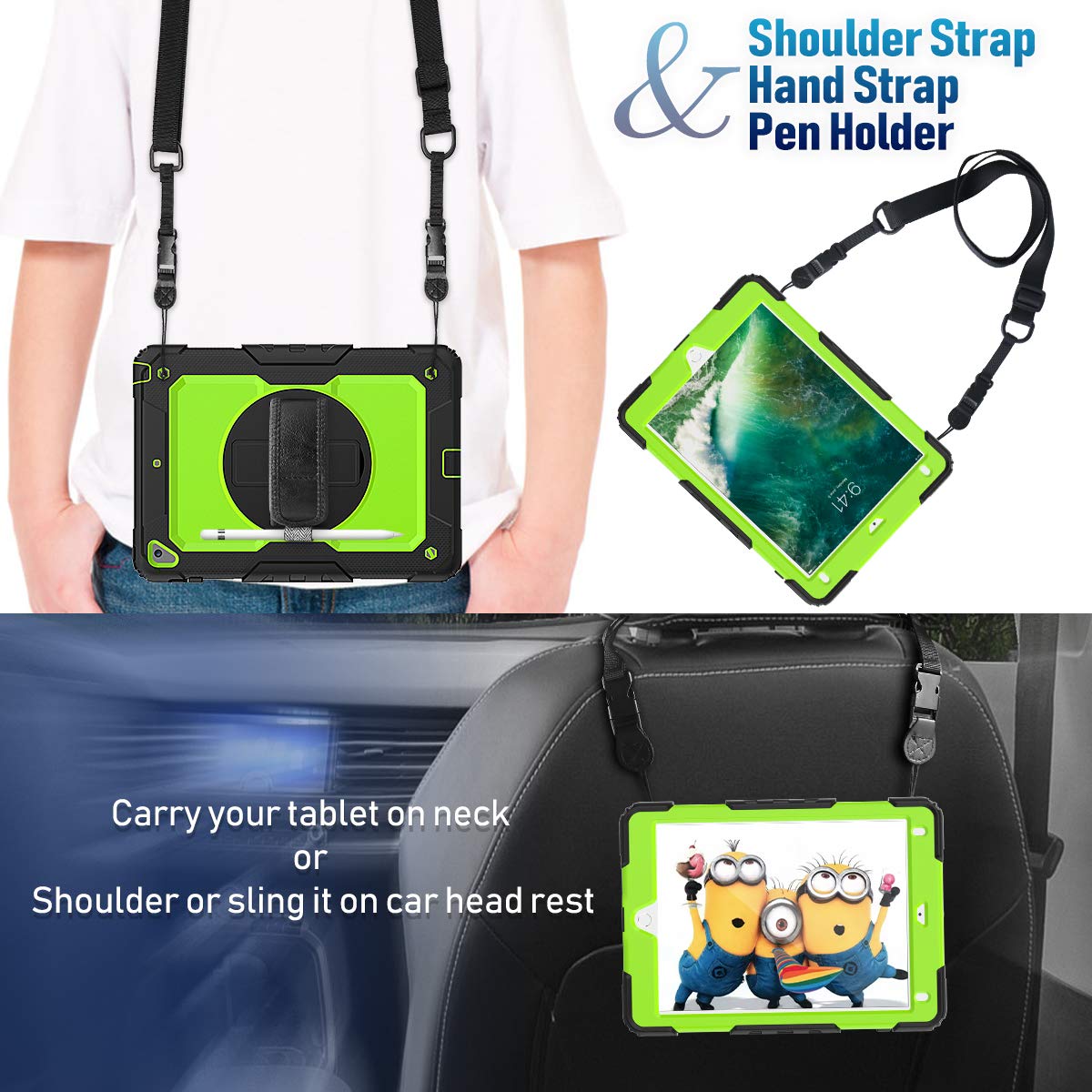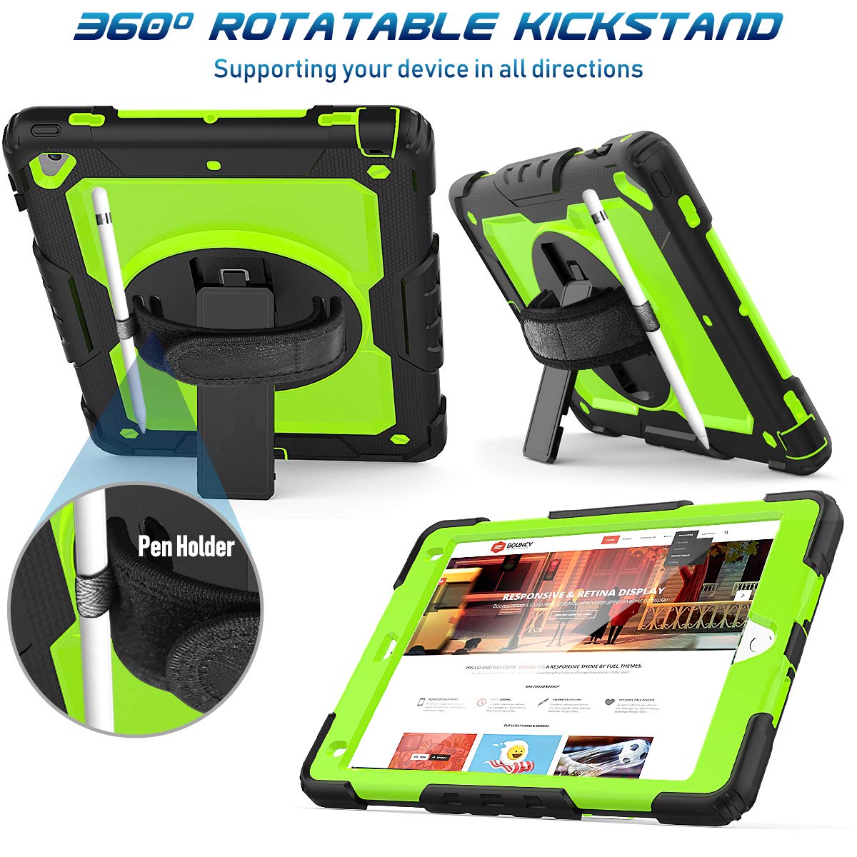 Timecity Case For Ipad 6Th/ 5Th Generation 9.7 Inch 2018/2017 Case With Rotating Stand Handle Strap, Full Body Silicone+Pc Durab