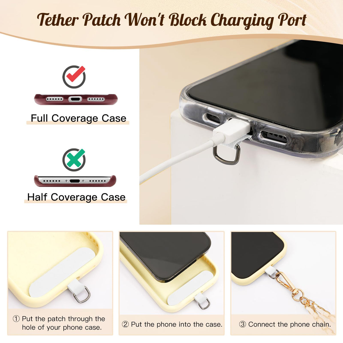 ?Multi-Functional Phone Chain Lanyard?57.1 Inches Perfect Length For Crossbody Or Shoulder Carrying. It Is Lightweight And Wont Cause Much Burden On Your Shoulder, So You Can Put Down Your Cell Phone To Free Your Hands To Do Other Things Anytime And Anywhere. The Crossbody Phone Strap Is Not Only For Your Cell Phone, But Also For Keys, Car Keys, Credit Card Holders, Wallet Purse, Handbags, Etc. | ?Fashionable Accessories?Designed With Sturdy Alloy Chain And Soft Pu, The Phone Necklace Is Elegant, Solid And Durable. Thanks To The Multi-Layer Plating Process, The Chain Will Not Fade And Will Maintain Its Timeless Beauty, Bringing A Subtle Sense Of Fashion. | ?Hand-Free & Travel-Friendly?The Lanyard For Iphone Turns Your Phone Into A Wearable Accessory, Keeping Your Phone Within Easy Reach All The Time Without Having To Fumble With It In Your Pocket Or Bag. Free Your Hands When Holding Your Kids, Shopping, Walking Your Dog, Biking Or Light Traveling. Ease The Burden Of Carrying Your Cell Phone On The Go, Making It Easier And Safer For You To Use Your Phone. | ?Easy To Use?No Tools Needed, Just Pass The Tether Patch Through The Charging Hole Of The Phone Case And Then Connect The Clasp To The Metal Phone Lanyard. The Thin Patch Supports Both Wired And Wireless Charging Without Removing It, And It Wont Block The Charging Port. | ?Compatible With All Phone Cases?This Universal Phone Lanyard Fits Seamlessly For All Phones With Full-Coverage Cases, Including The Iphone, Samsung Galaxy And More.