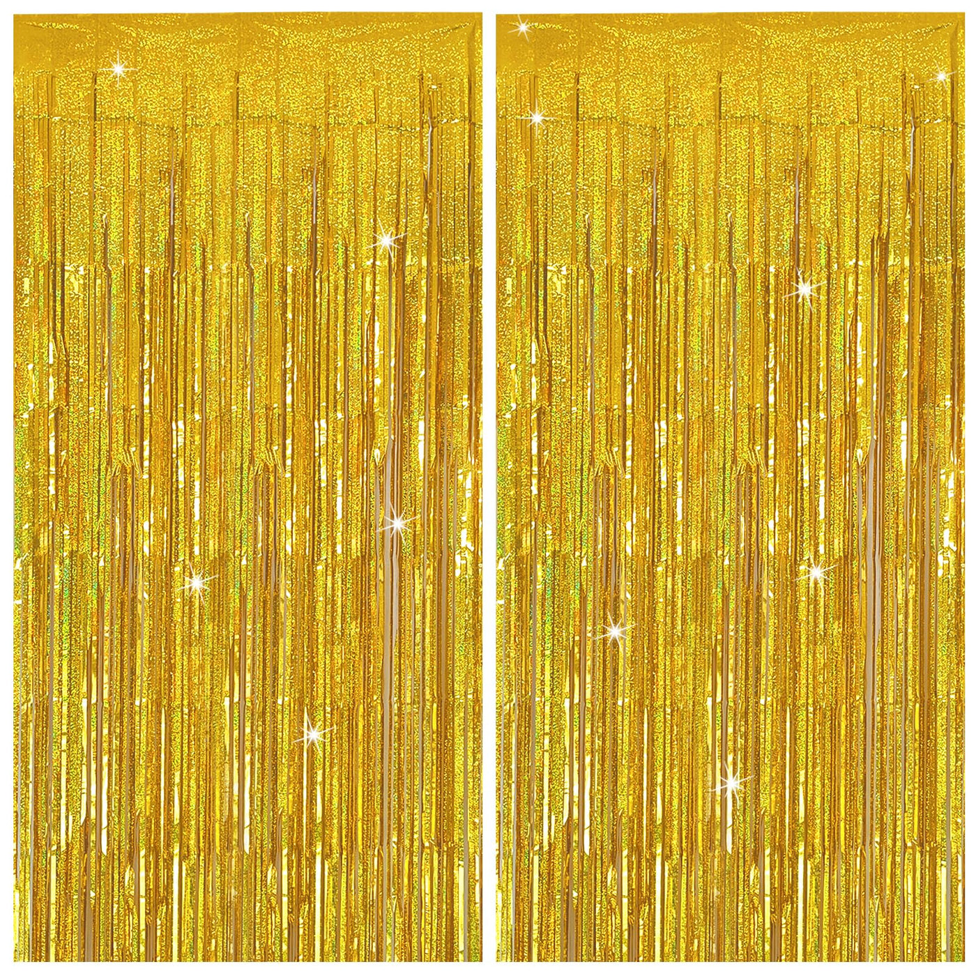 Tinsel Curtain Party Backdrop Gold Birthday Party Decorations 2 Packs Glitter Foil Fringe Curtain Party Decor Streamers Photo Booth For Birthday Christmas Wedding Halloween Graduation Decorations