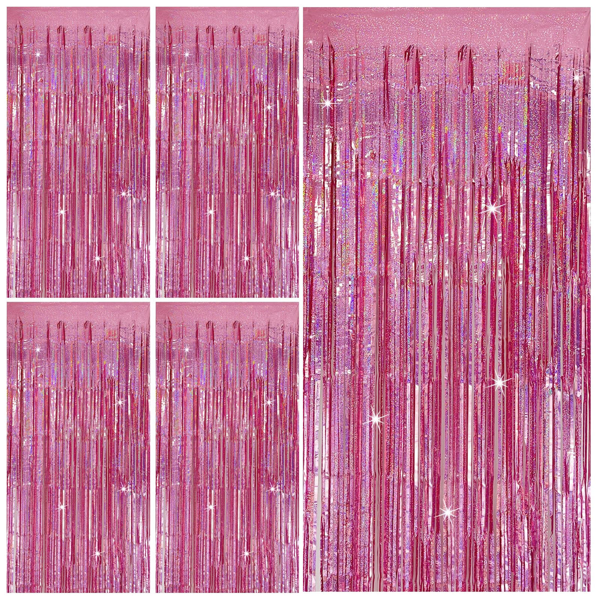 Tinsel Curtain Party Backdrop Pink Birthday Party Decorations 5 Packs Glitter Foil Fringe Curtain Party Decor Streamers Photo Booth For Birthday Christmas Wedding Halloween Graduation Decorations