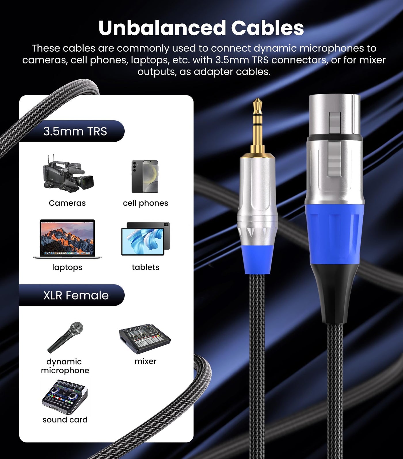 Tisino Xlr To 3.5Mm Microphone Cable - 10 Feet Unblanced Xlr Female To 1/8 Inch Mic Cord For Camcorders, Dslr Cameras, Computer Recording Device And More