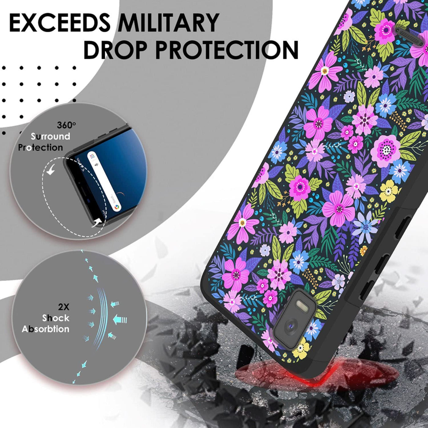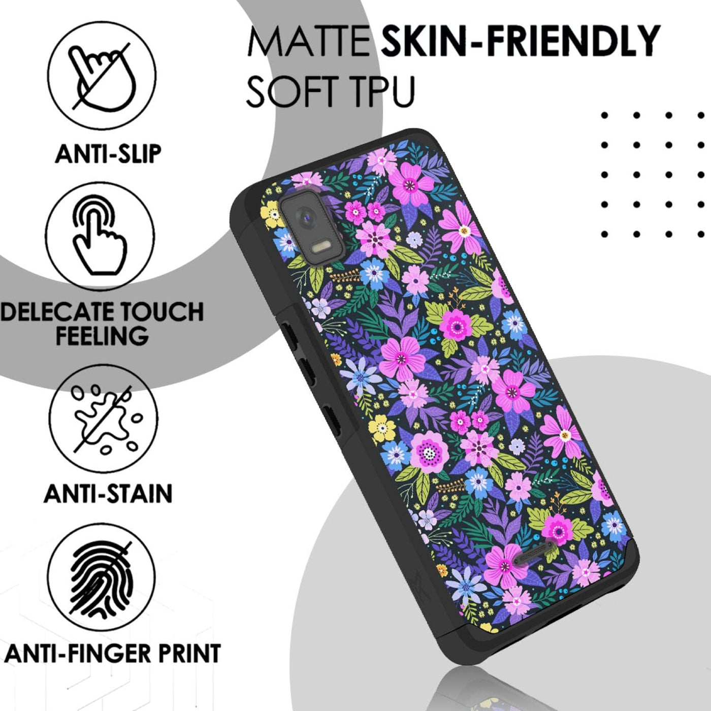 Tjs Compatible For Cricket Debut Smart 2022 Case, Dual Layer Hybrid (Magnetic Mount Friendly) Shockproof Drop Protection Impact