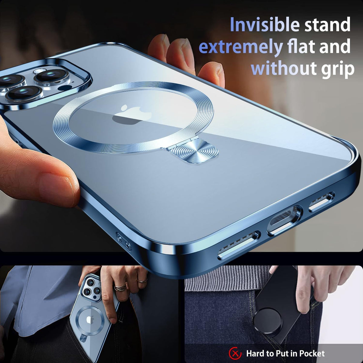 Tlikemiss [Cd Ring Compatible With Magsafe Invisible Stand] Magnetic For Iphone 13 Pro Case, [Electroplated Bumper Non Yellowing