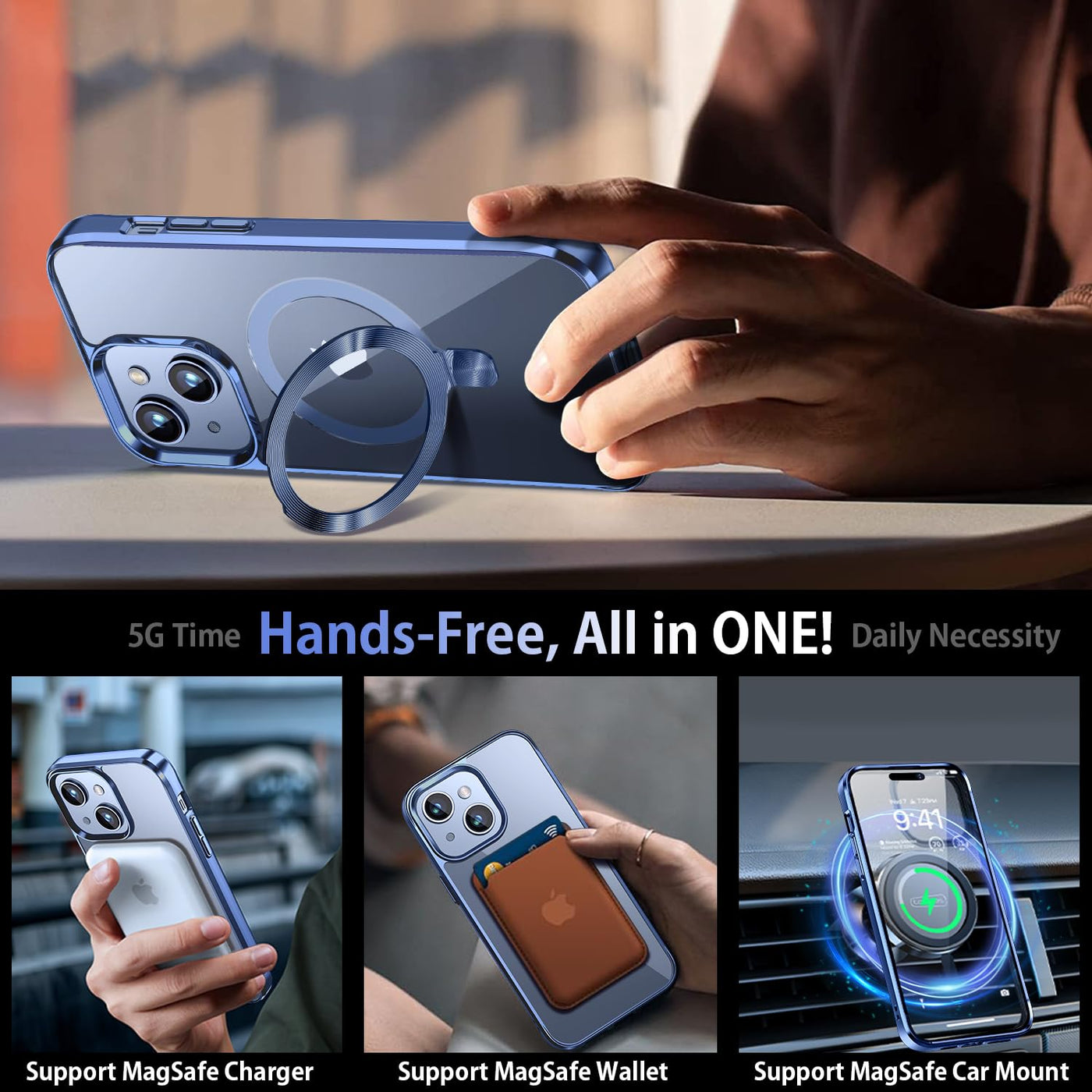 Q: Is the TLIKEMISS case compatible with other MagSafe accessories?A: Yes, the TLIKEMISS [CD Ring Compatible with MagSafe Invisible Stand] is designed to work seamlessly with all MagSafe accessories, including chargers and third-party Qi-certified wireless chargers, thanks to its built-in strong magnetic capabilities.