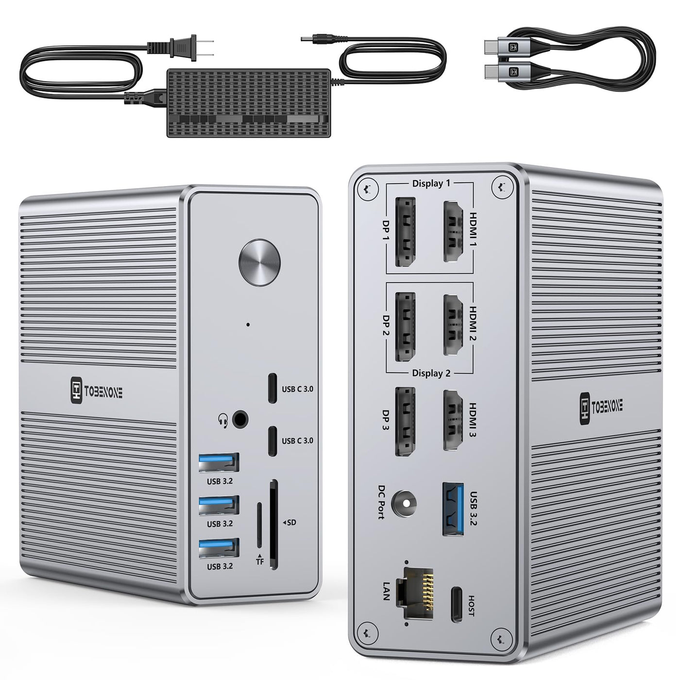 Tobenone Displaylink Docking Station Triple Monitor With 120W Power Adapter, Triple 4K Display For Macbook Pro/Air, Thunderbolt 4/3, Usb C Windows(3X Hdmi, 3X Displayport, 2Xusb C, 4Xusb 3.2, Sd/Tf) 3