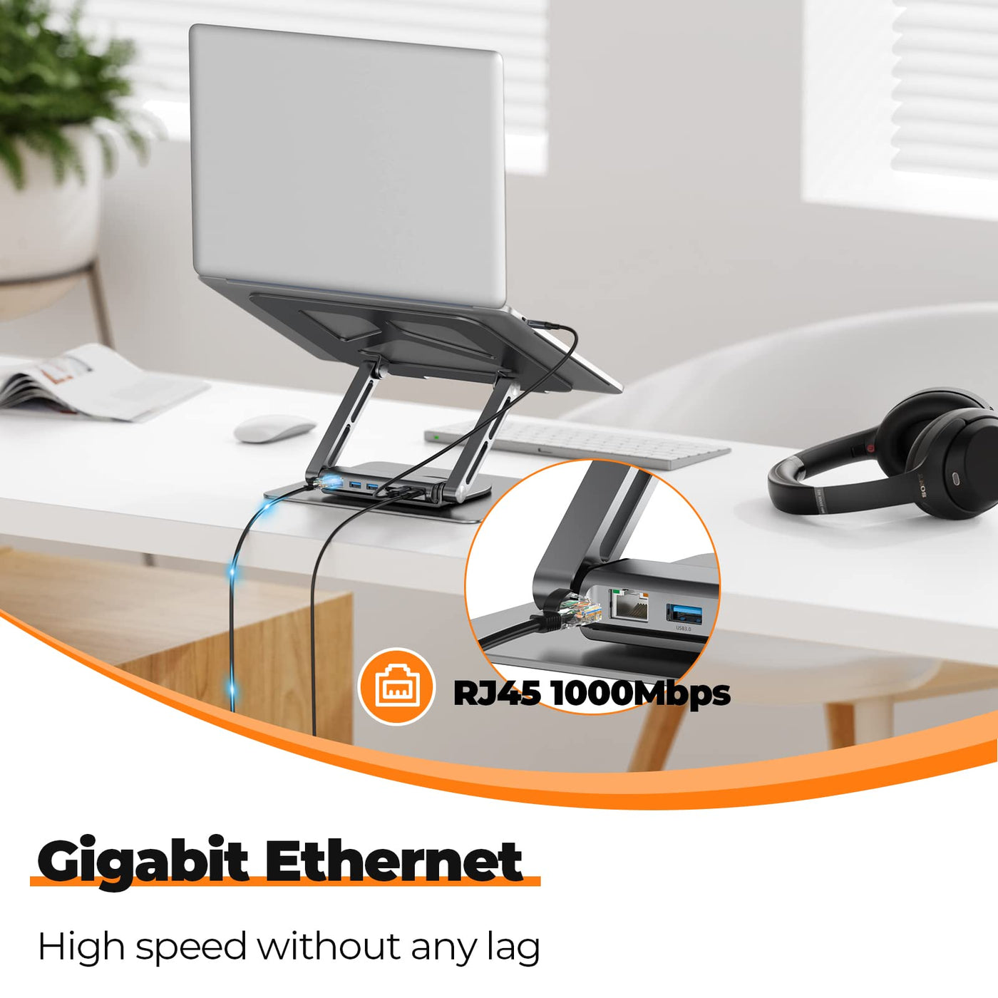 Tobenone Usb C Laptop Docking Station Stand For Macbook Pro/Air/Dell/Hp/Surface/Lenovo, Detachable Usb C Hub, 4K Hdmi, 2 Usb 3.0, Rj45, Pd 3.0, Universal Laptop Dock With 360 Rotating Base Grey