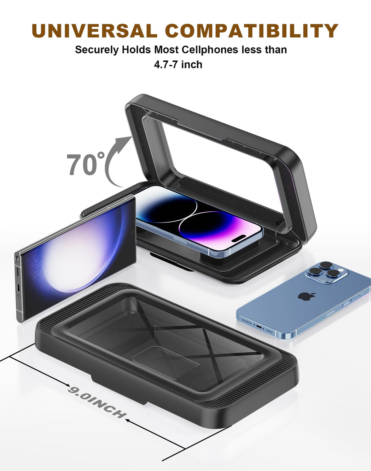 Q: Can the phone mount hold phones with cases?A: Yes, it is designed to accommodate phones even when they have cases on. This adds extra convenience.