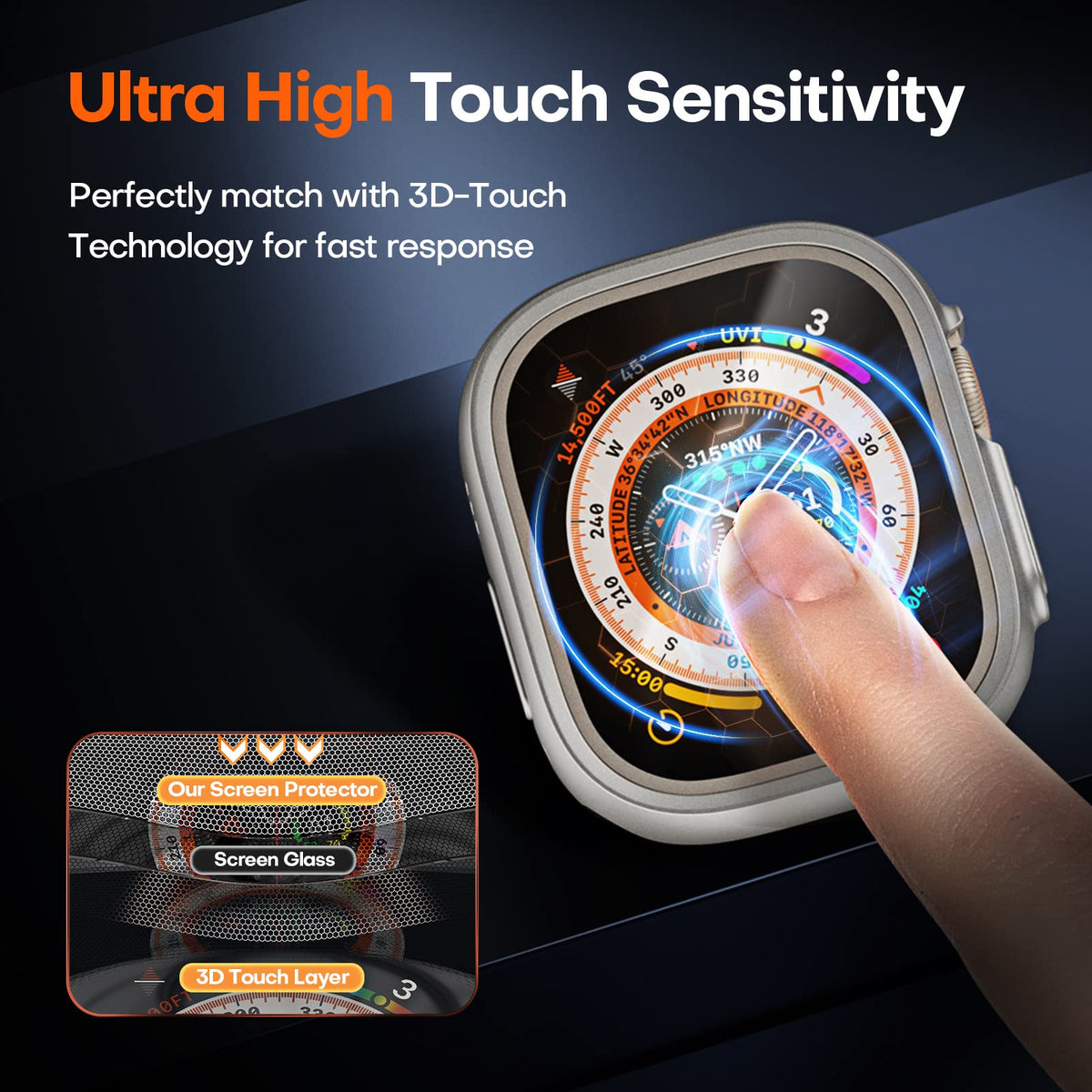 Q: Can I use my Apple Watch Ultra normally with the TOCOL case and screen protector on?A: Yes, the TOCOL case and screen protector are designed to maintain touch sensitivity and HD clarity, allowing for a smooth user experience without hindering functionality.
