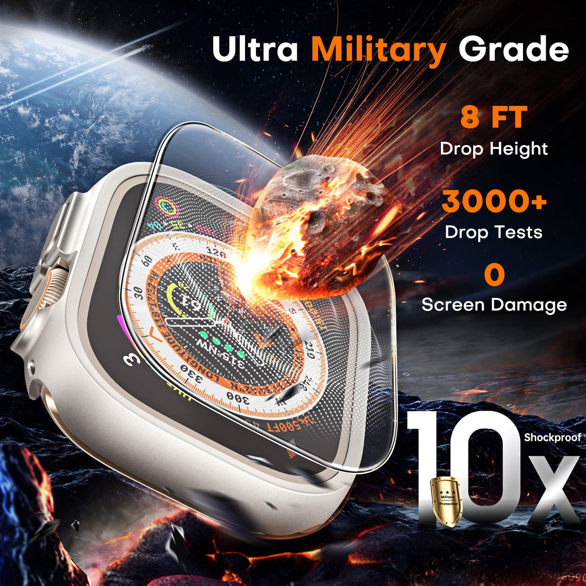 Tocol 2 Pack For Apple Watch Ultra 2/1 Case 49Mm + 2 Pack Tempered Glass Screen Protector For Iwatch, [10X Military Grade Shockp