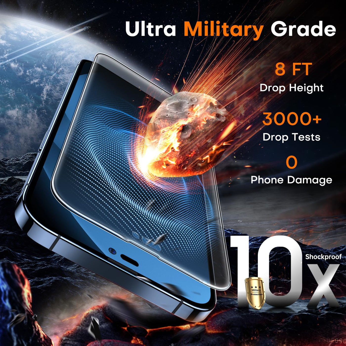 Q: How durable is the TOCOL Privacy Screen Protector?A: The TOCOL Privacy Screen Protector is made from 9H ultra-strong military-grade glass, designed to withstand high impacts and drops from up to 7 feet, providing robust protection for your device.