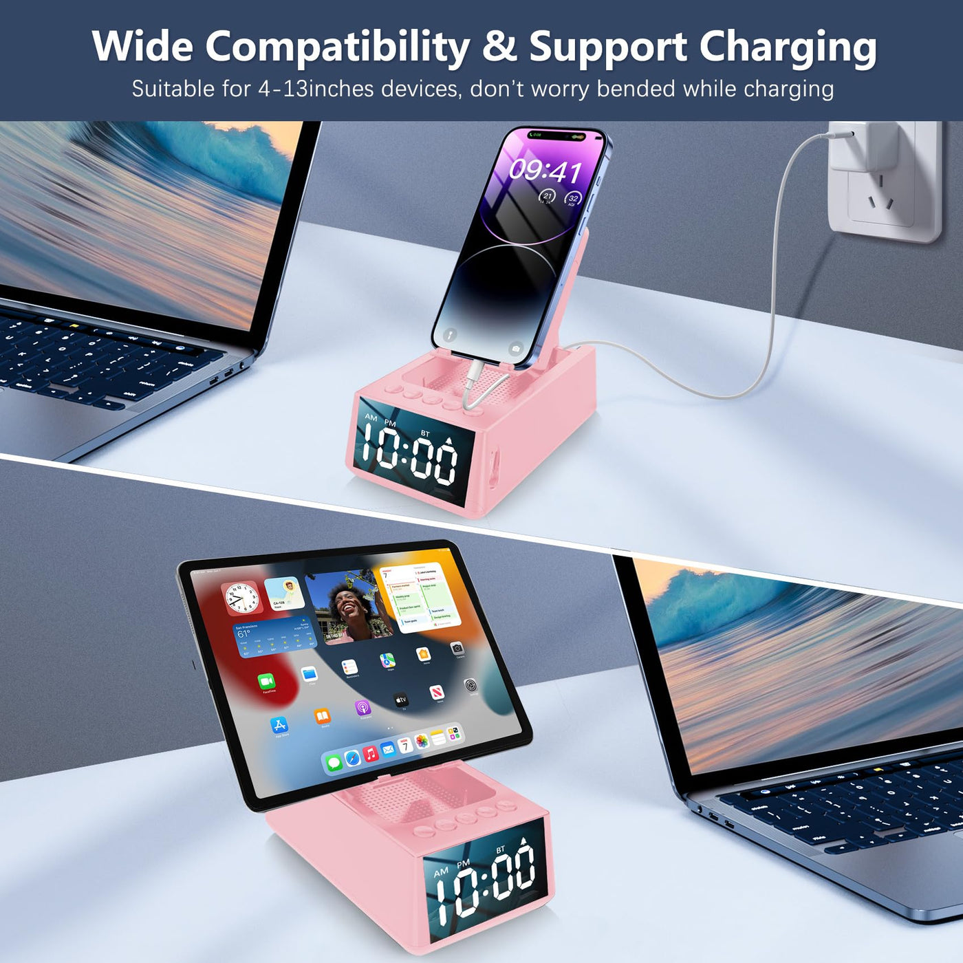 Cell Phone Stand With Wireless Bluetooth Speaker About Toiysyy. Multifunctional Design: * Multi-Angle Adjustable Stand, Free Your Hands Whether For Leisure Or Study, Sports Or Cooking. * Adopt Bluetooth 5.3 Technology, Enjoy High-Definition Stereo Surrounding Sound. * Digital Display, Cool Stuff To See The Time. * Alarm Clock Mode With Gradually Increasing Ringtone And One-Touch Snooze Function, More Suitable For Deep Sleepers. * Foldable Slim Design For Easy Storage And Portability. * Technological Gadget, Perfect Gift Choice, Can Be A Unique Birthday Gift For Him/Her/Men/Women. Services: Toiysyy Provides 100% Satisfaction Product To Our Customers And 24-Hour Email Contact Service. If There Is Any Issue With The Product, Please Feel Free To Contact Us.