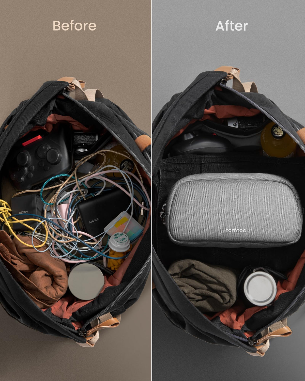 One Pouch, Everything The Light-T12 Portable Accessory Pouch Offers An Inclusive Solution For Your Daily/Travel Essentials. Without Clutter And Loss, A Hassle-Free Solution To Keep Things Just In The Palm Smart-Organized Smart Compartment Design For Excellent Organization. Stores Your Tech Gadgets Efficiently, Ensuring Electronic Or Travel Essentials Are Neatly Organized And Within Reach, Whether Youre At Home Or On The Go Adaptable &Amp; Versatile Utility Ideal For The Tech-Savvy And Beyond, This Pouch Also Adapts To Store Daily Items Like Keys, Pens, And Personal Items. Whether Heading To Work Or Traveling, Everything Is Easily Accessible Eco-Friendly &Amp; Durability Crafted From Sustainable Rpet 600D Polyester, This Pouch Is Not Just About Looks And Functionality But Also About Making An Environmentally Friendly Choice Without Compromising On Quality Convenient &Amp; Stays Portable Designed For Portability, The Tomtoc Tech And Travel Pouch Keep Your Essentials Organized And Within Reach, Fitting Seamlessly Into A Backpack, Tote, Or Handbag For Everyday Use