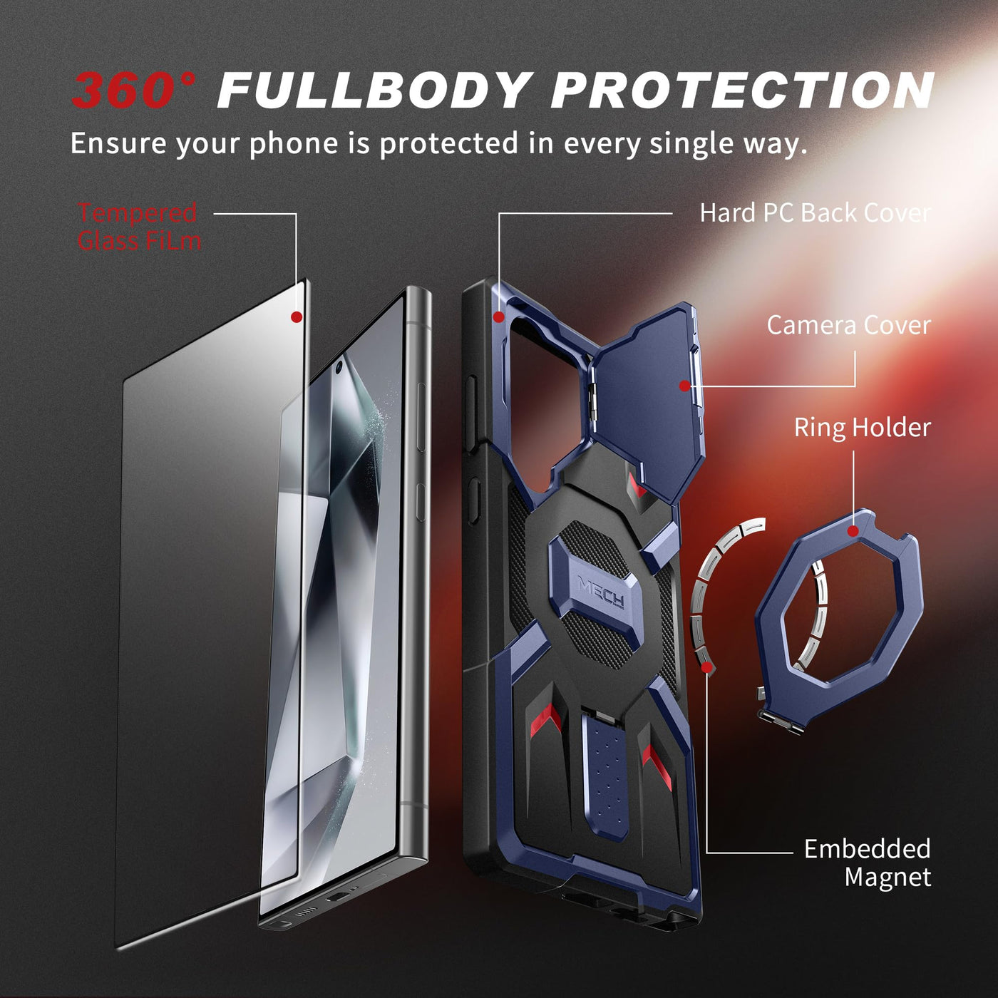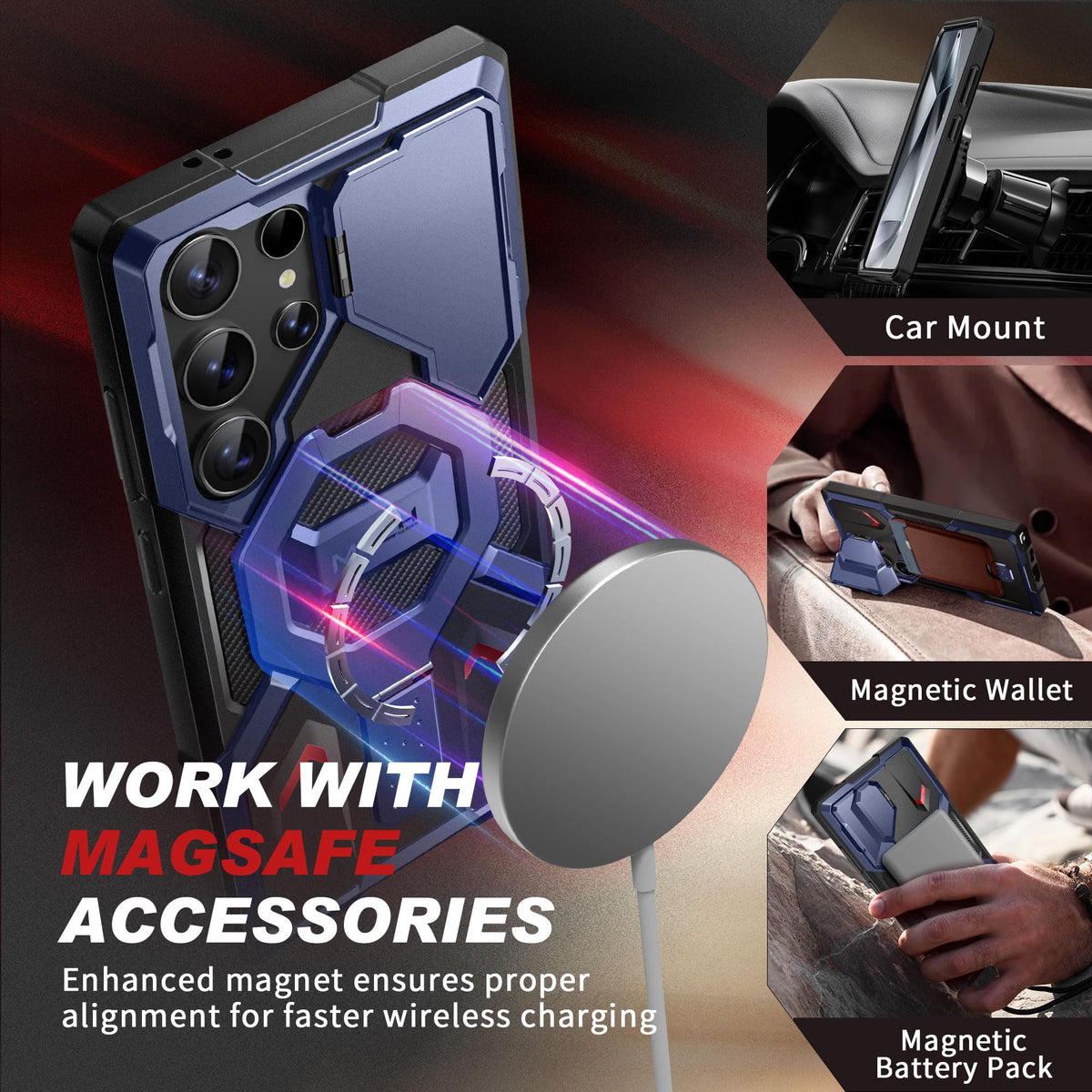 Tongate For Samsung Galaxy S24 Ultra Case Compatible With Magsafe, [Ring Stand & Camera Cover Kickstand]Drop Shockproof Rugged P