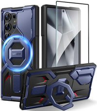 Tongate For Samsung Galaxy S24 Ultra Case Compatible With Magsafe, [Ring Stand & Camera Cover Kickstand]Drop Shockproof Rugged Protection Phone Case For S24 Ultra With Screen Protector 6.8'',Dark Blue