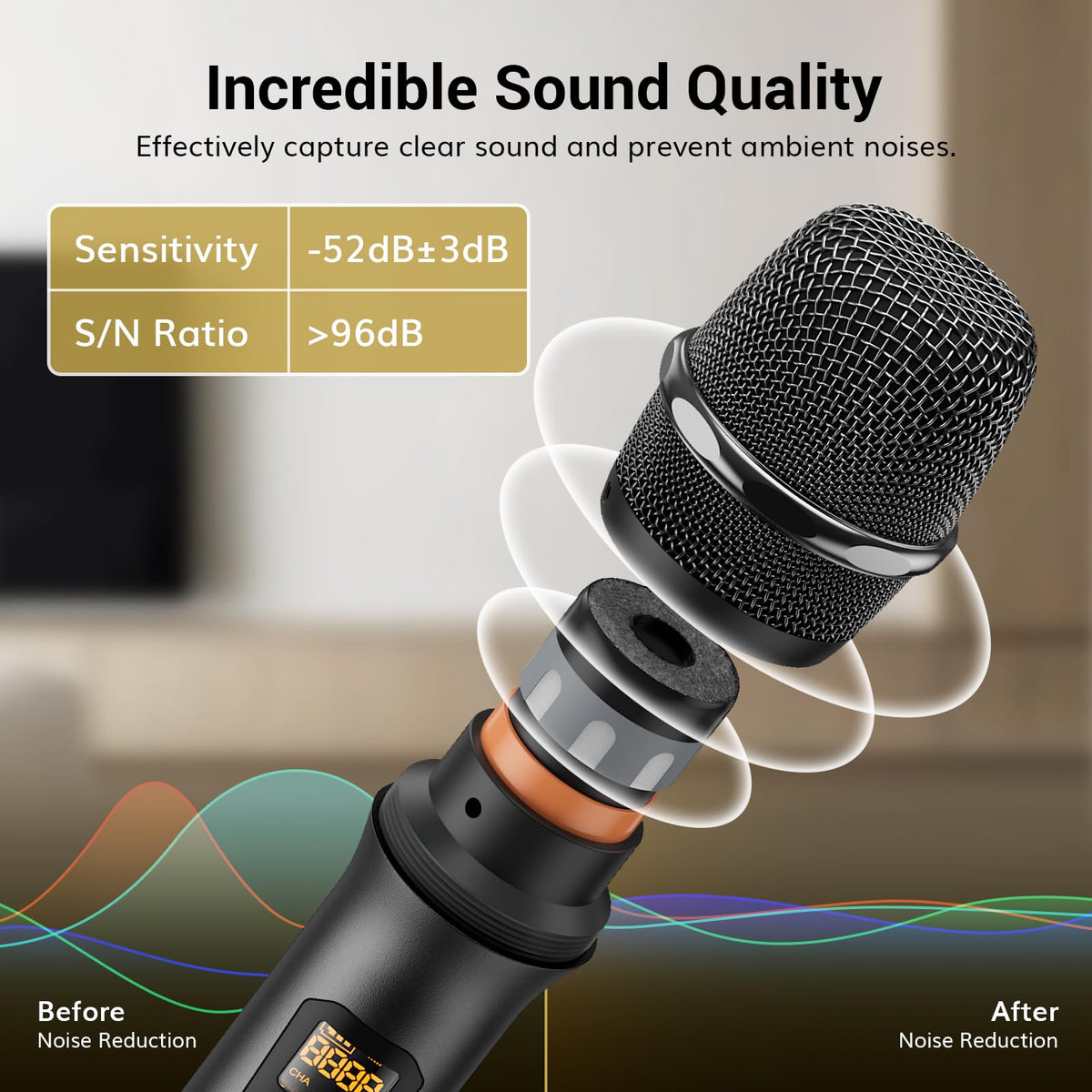 Tonor Wireless Microphone System, Professional Metal Cordless Karaoke Microphones, Handheld Dynamic Mic Set With Receiver For Pa