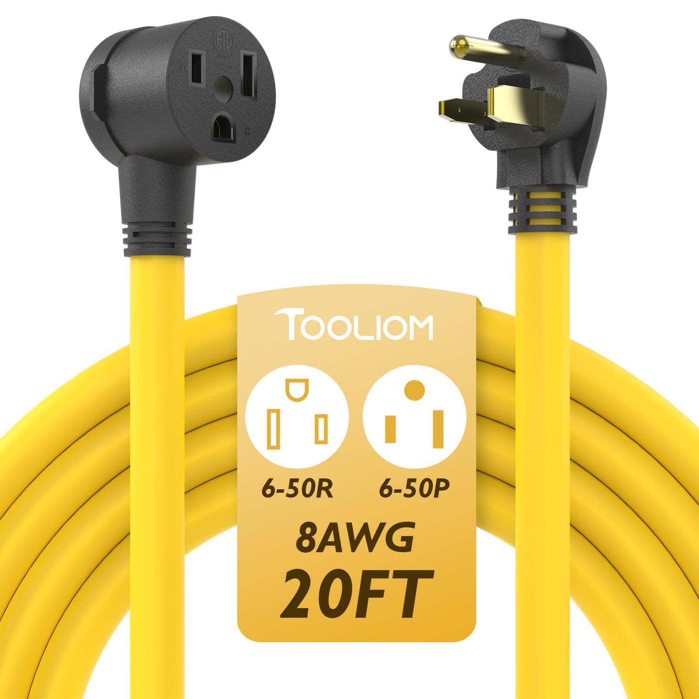 Q: What is the length of the TOOLIOM Welder Extension Cord and how does it help in usage?A: The TOOLIOM Welder Extension Cord is 20FT long, allowing you to extend your range and conveniently move the welder closer to your welding project, enhancing usability in various workspaces.