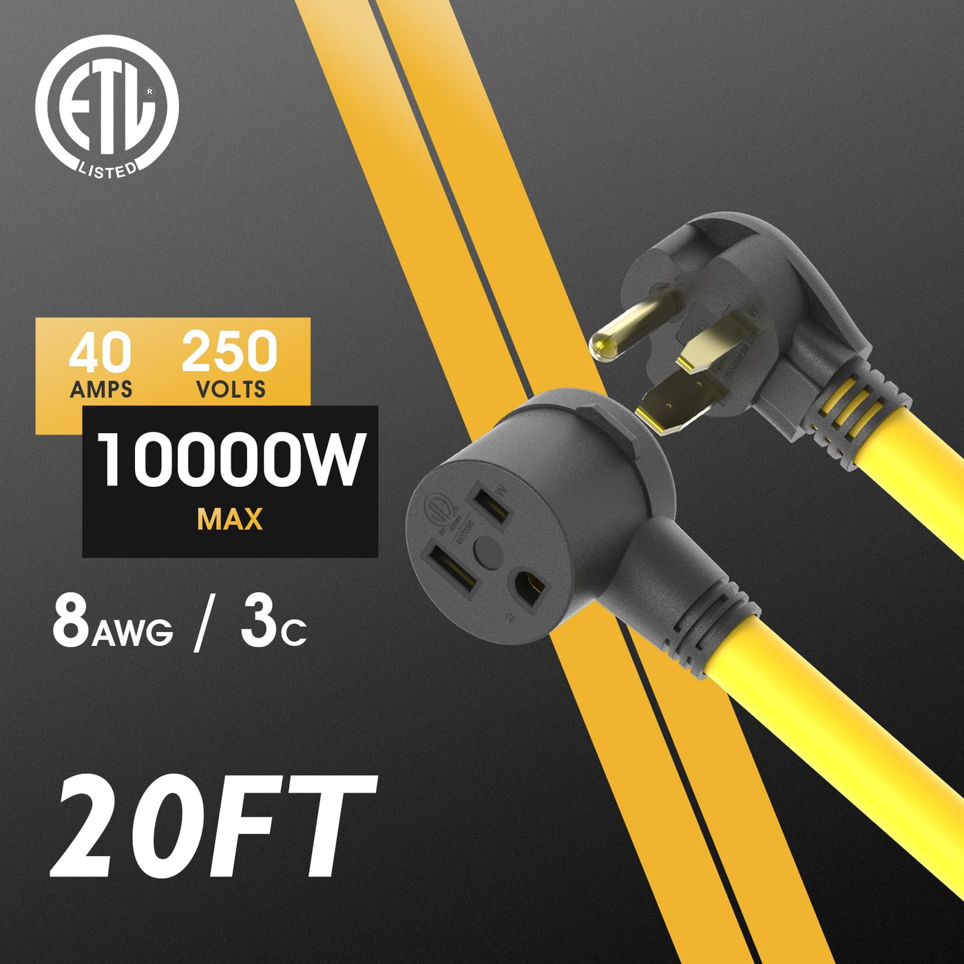 Q: What is the maximum power capacity of the TOOLIOM Welder Extension Cord?A: The TOOLIOM Welder Extension Cord has a maximum power capacity of 40A, 250V, and 10000W, making it suitable for heavy-duty welding applications.