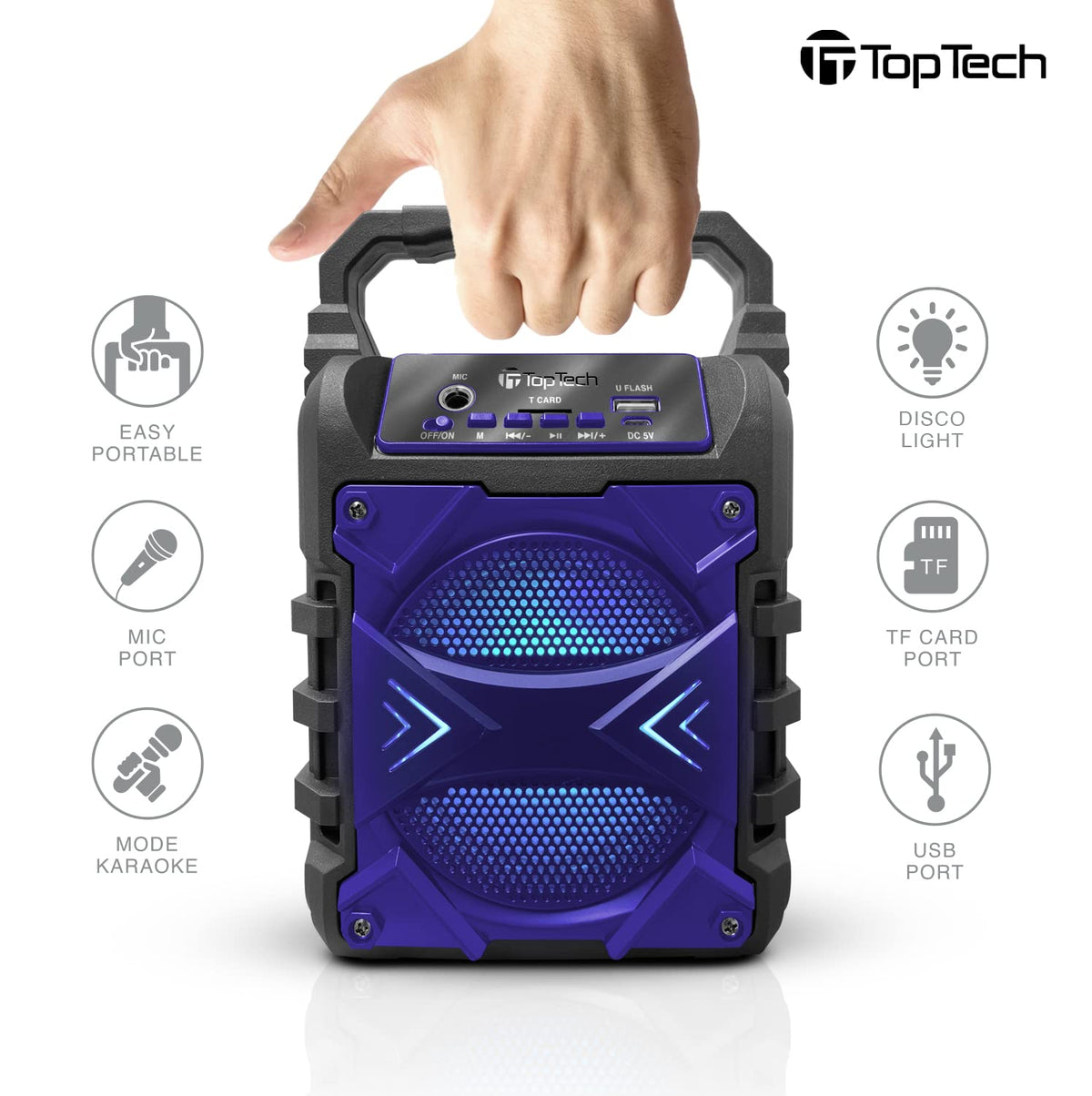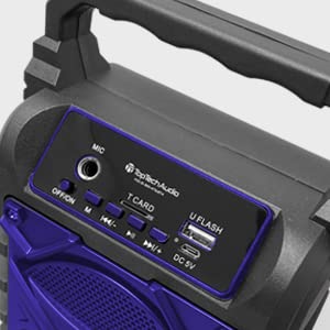 Are You Searching For A High-Quality Wireless Speaker That You Can Use With Your Bluetooth-Enabled Device? Wouldn�T It Be Great If This Speaker Was Not A Pain In The You-Know-What To Carry Around? If You Answered Yes To Either Question, Then You�Re Going To Love The Top Tech Audio Jet-4 Bluetooth Speaker! With This Wireless Speaker, You Can Stream Music From Any Bluetooth Device, Anytime, Anywhere. Whether You�Re Having A Party At Your House With Close Friends Or Family, Enjoying A Picnic On A Beautiful Spring Day, Or Having Fun At The Beach, This Portable Speaker Is Sure To Crank Up The Fun Level. There Are No Messy Wires Or Challenging Set-Ups. Just Make Sure It�S Charged, Connect Your Device, And Start Streaming You Favorite Tunes! Product Features & Benefits: Measures 4 Inches Woofer (Large But Portable Size) Connects With All Bluetooth Devices Easily Equipped With A Beautiful Led Light Display Accepts Usb Memory Devices & Sd Cards Rechargeable, Long-Lasting Battery (Up To 5 Hours) Includes Convenient Guitar & Karaoke Inputs Why Choose Top Tech Audio? We Produce High-Quality Audio Equipment And Accessories To Make Our Customers� Lives More Enjoyable. All Of Our Products Are Proudly Backed By A 30 Day Money Back Guarantee, So When You Order Today, You Have Nothing To Lose, And A Premium Product To Gain. Click The Add To Cart Button Above To Get Your Hands On The Most Convenient Party Speaker Around!