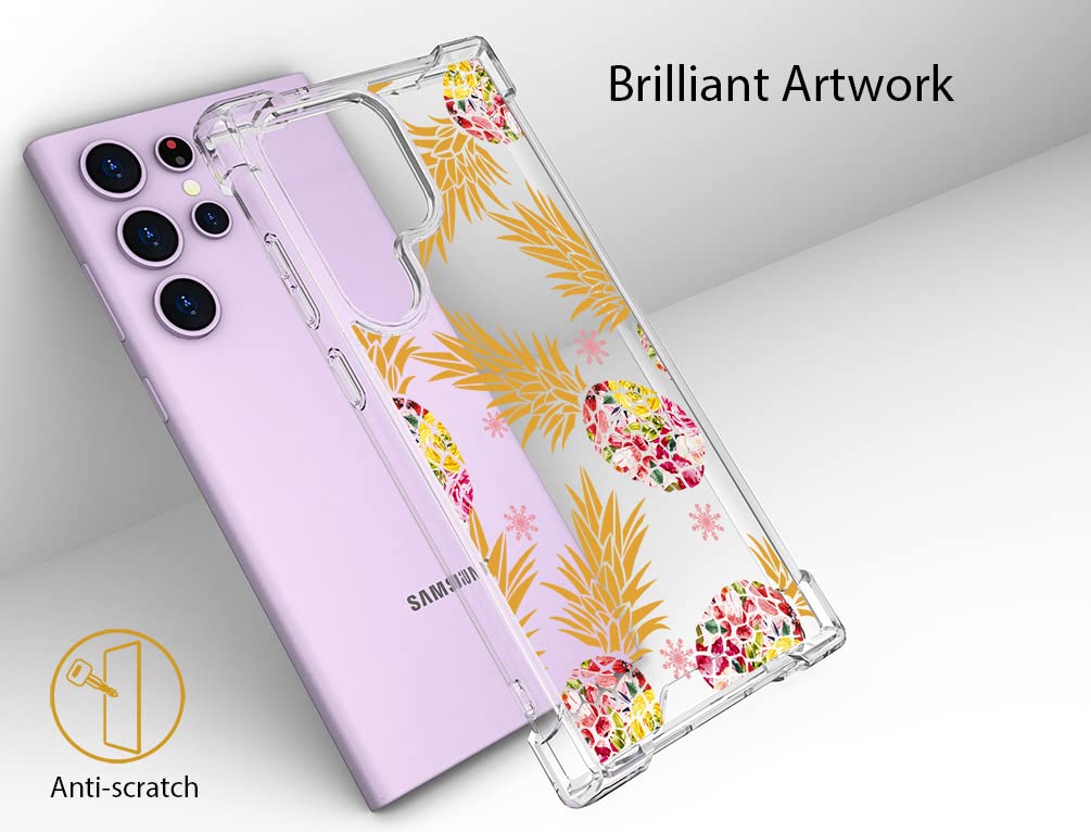 Topgraph Case Cute Pineapple Clear For Women Girly Designer Girls For Galaxy S23 Ultra, Cute Silicone Transparent Phone Case Pin