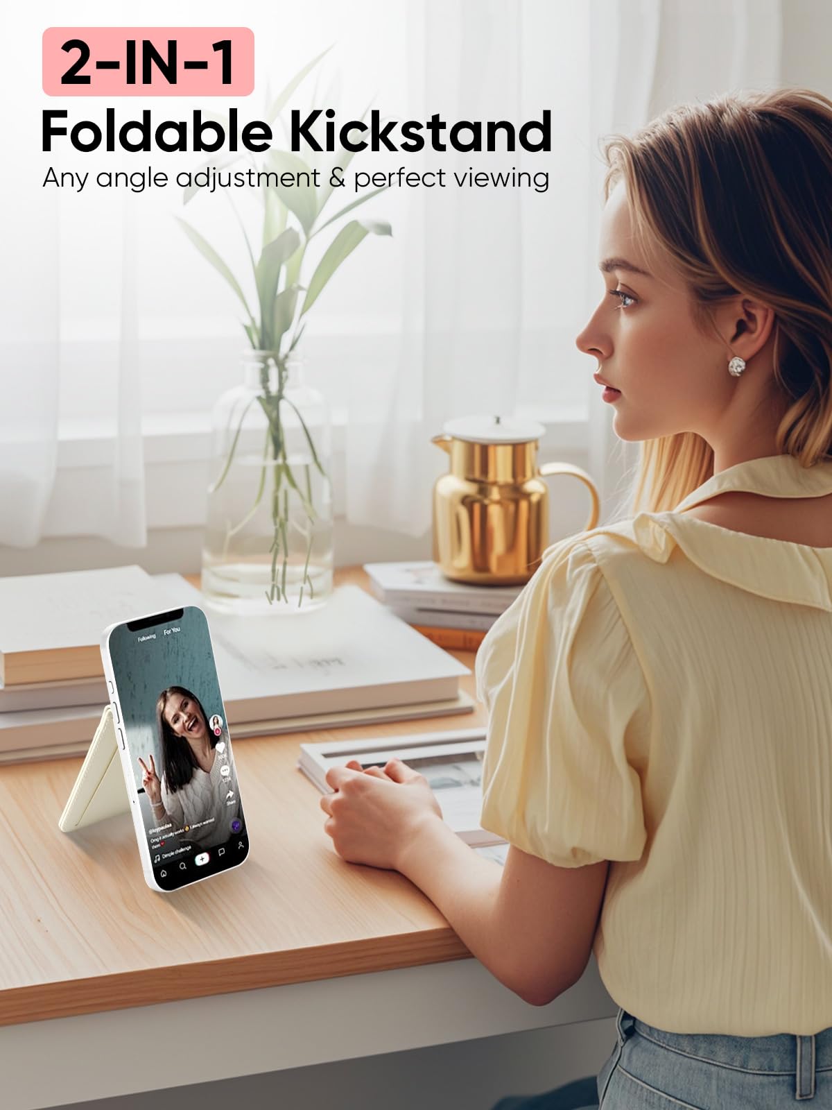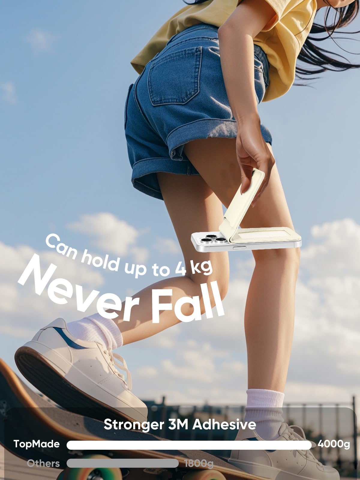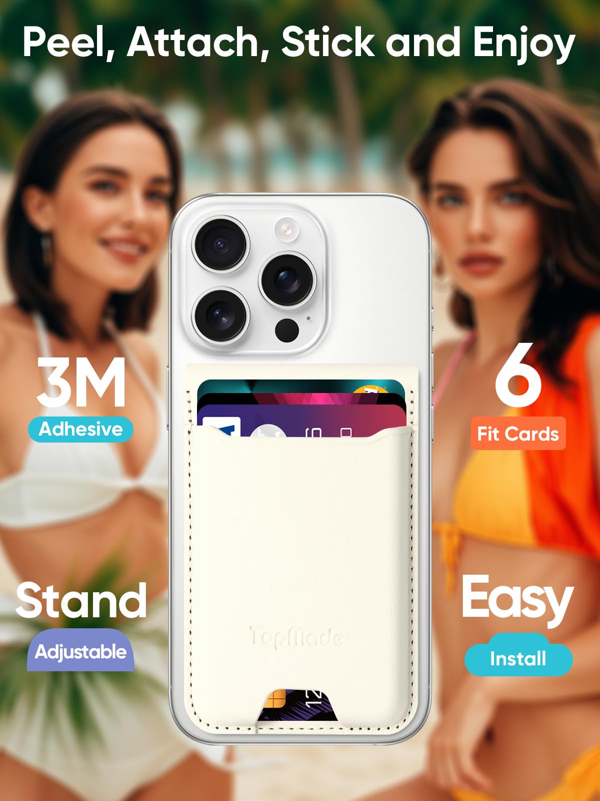 Topmade Phone Card Holder, Leather Phone Wallet Stick On With Stand, Open Id Window, 3M Adhesive Credit Card Holder For Back Of