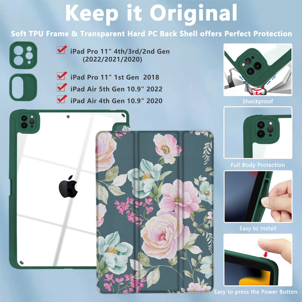 Topperfekt For Ipad Air Case 5Th / 4Th Generation 10.9 Inch (2022/2020),Ipad Pro 11 Inch Case With Transparent Shockproof Back C