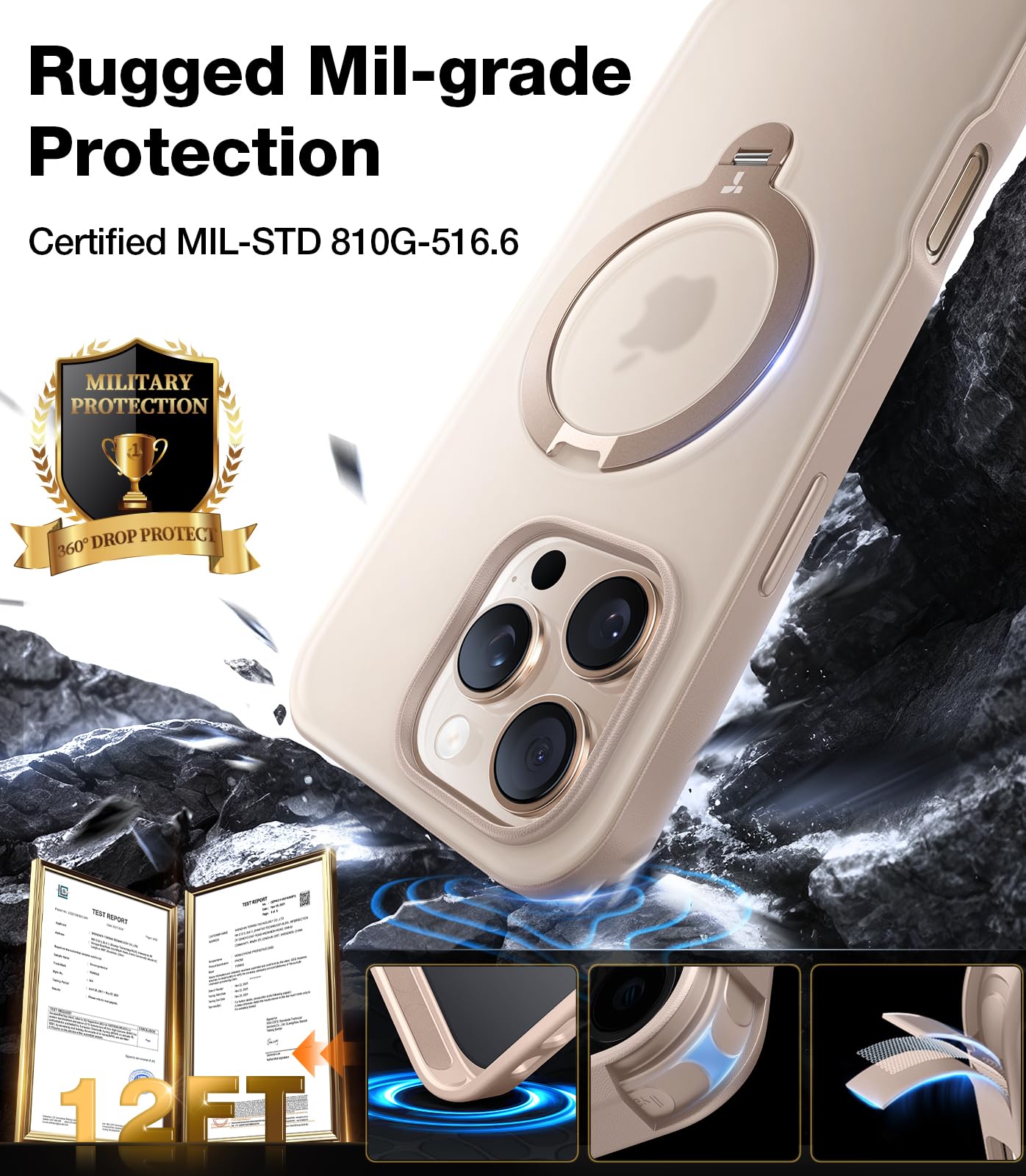 Torras 360 Spin Magnetic Stand For Iphone 16 Pro Max Case, Fit For Magsafe, 12Ft Military Grade Protective Case For 16 Pro Max P