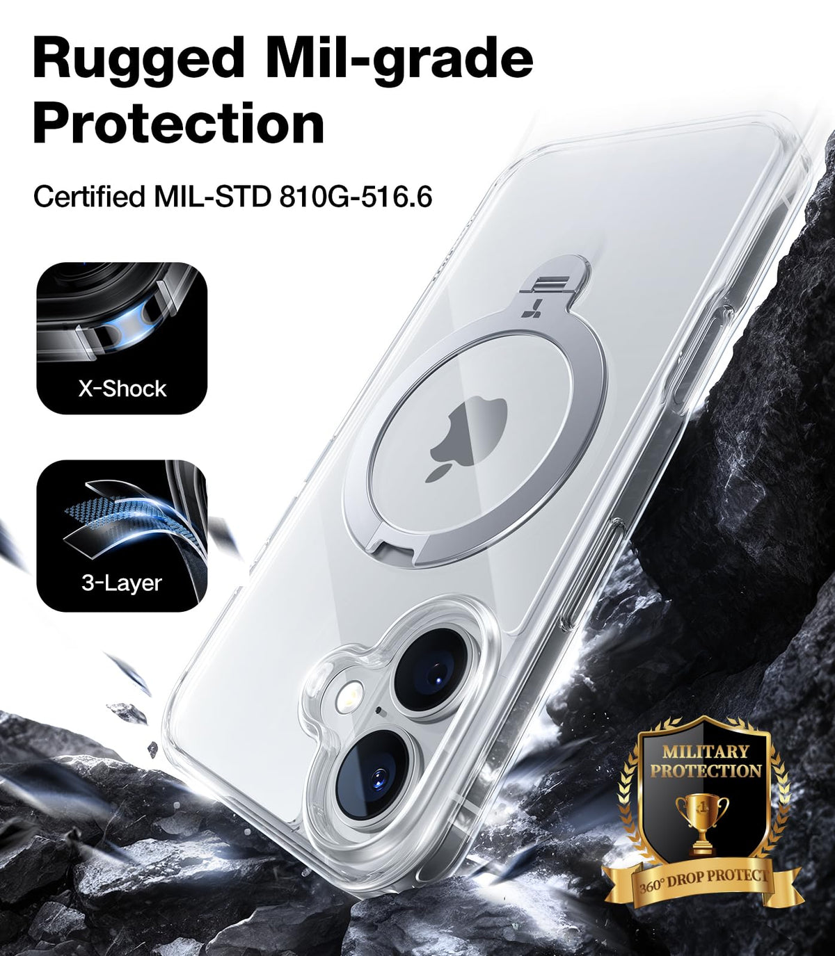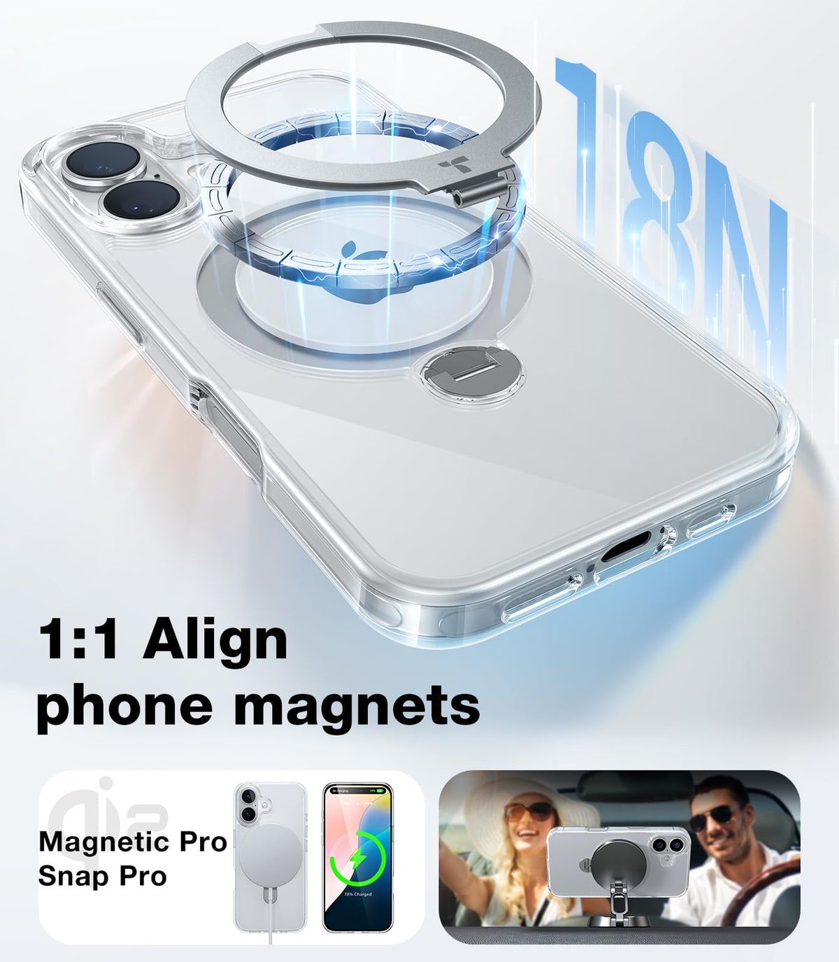 Torras 360 Spin Stand For Iphone 16 Plus Case, Compatible With Magsafe, 12Ft Military Grade Protective Case For Iphone 16 Plus P