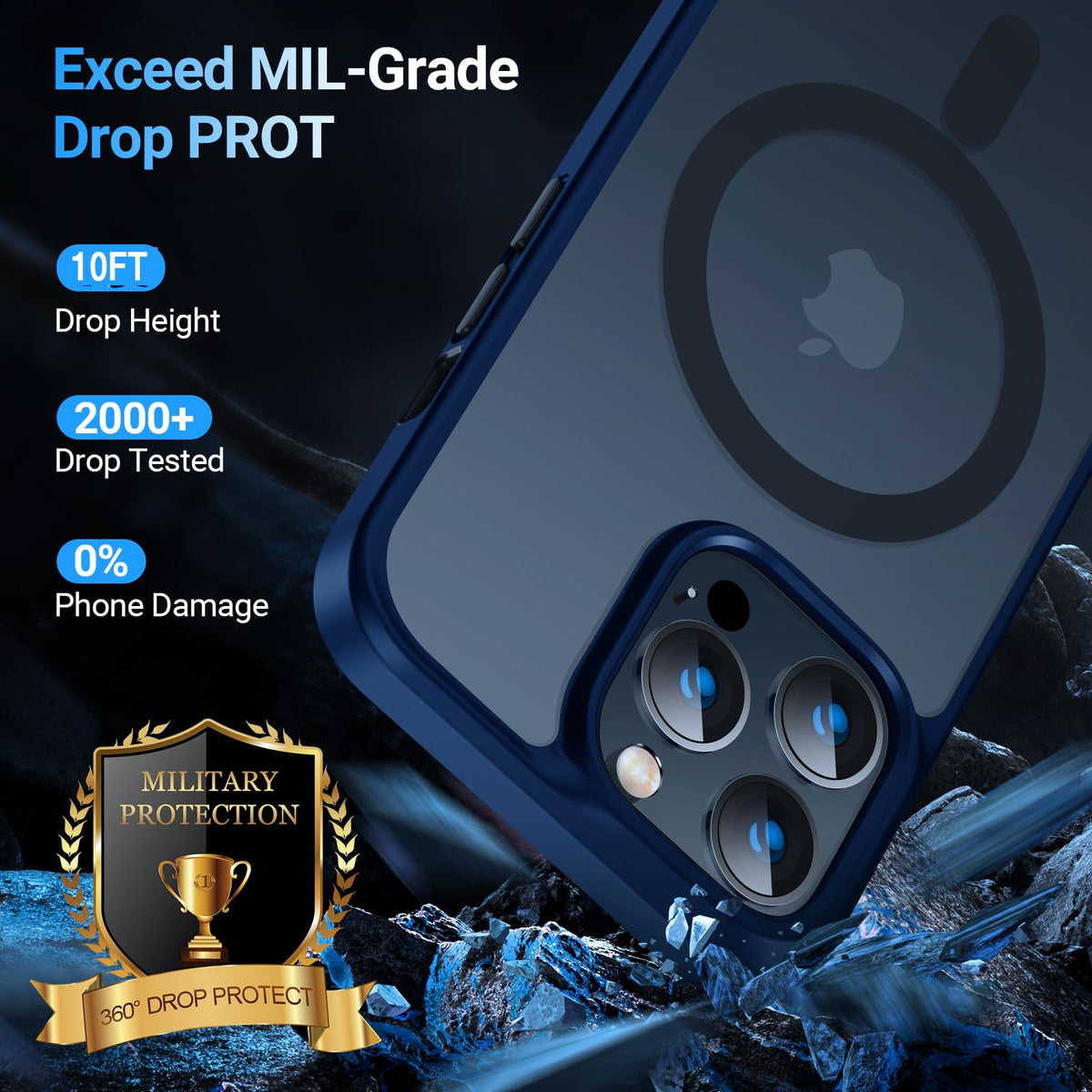 ??[Lock Your Charger Firmly] Iphone 13 Pro Max Cases Built-In 2Nd Gen Magnet Ring Aligns Perfectly And Locks Into Place Making Wireless Charging Faster And Easier Than Ever. Powerful Magnetic No Longer Worry About Shaking The Phone Would End Up Releasing The Accessory, Offers Fast Charging At Home, In The Office, Or On The Go | ??[Convincing Military-Grade Protection] Tested To Withstand Drops Exceeding Military Standards With 1.5Mm Extra Raised Edge And Is Equipped With 360