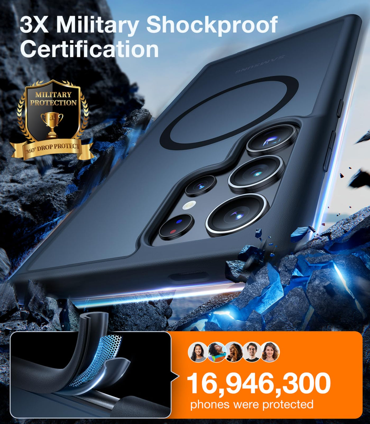 Torras Magnetic Shockproof For Samsung Galaxy S24 Ultra Case, [18N Mighty Magnetic] [12Ft Military Grade Drop Tested] [Compatibl