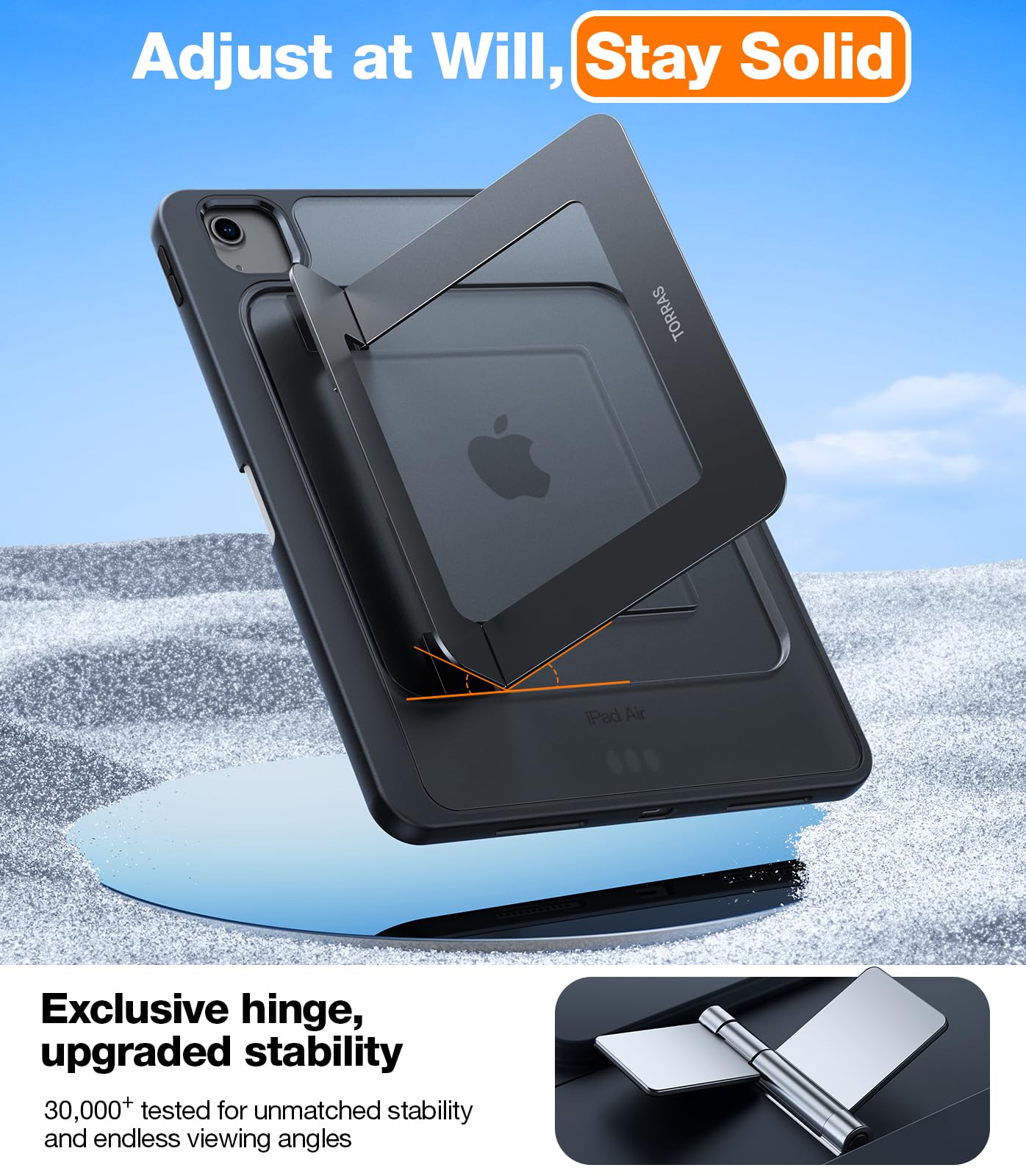 Torras Ostand For Ipad Air 11 Inch Case M2 2024 & Ipad Air 6Th/ 5Th/ 4Th Generation Case Slim, Invisible Adjustable Portrait/Landscape Stand, Any-Angle Viewing, Support Apple Pencil Pro/ 2Nd, Black