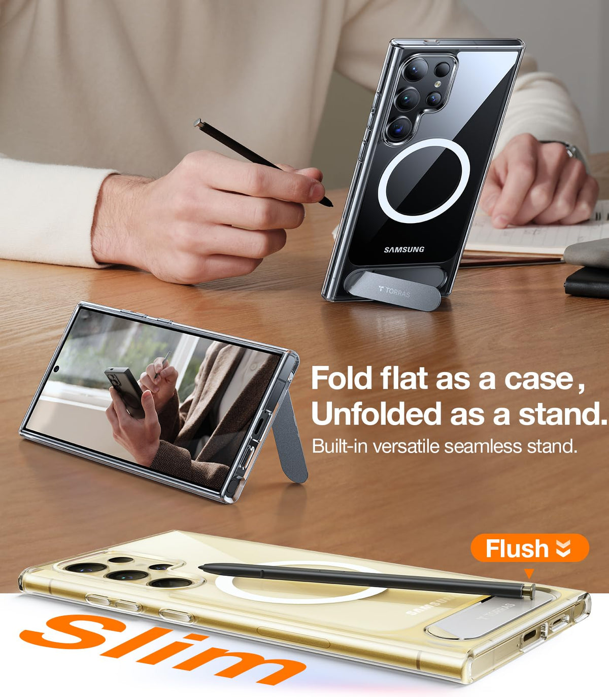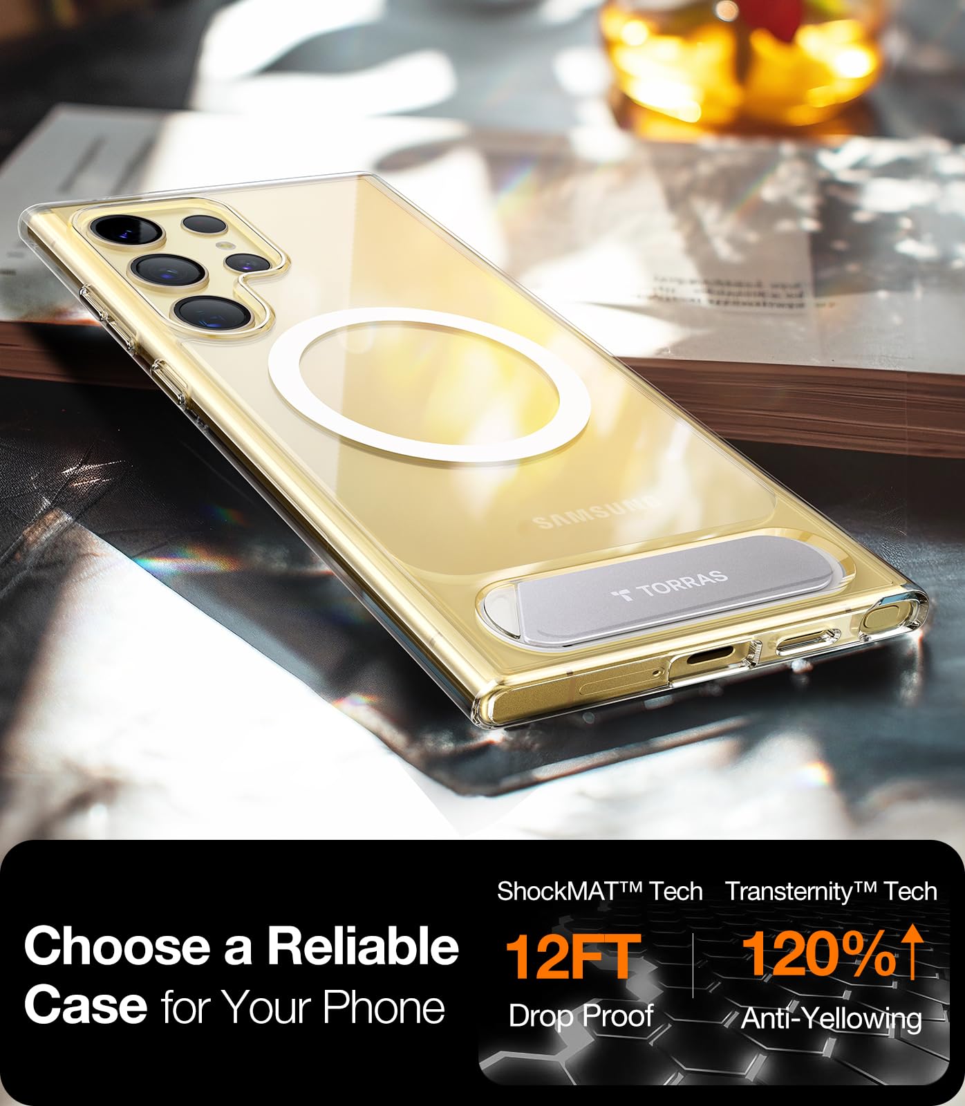 Torras Strong Magnetic & Seamless Stand For Samsung Galaxy S24 Ultra Case For Magsafe, Mil Grade Drop Protection, Adjustable Kic