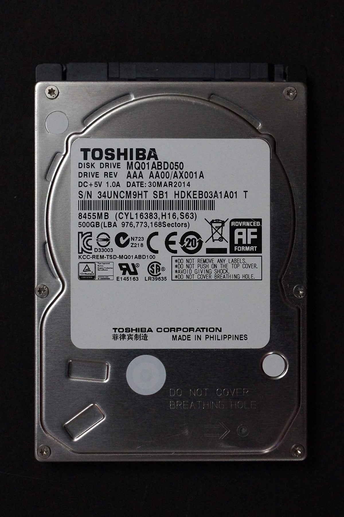 Toshiba 500GB 2.5 inch SATA Laptop Hard Drive (5400rpm, 8MB Cache) MQ01ABD050, Mechanical Hard Disk
