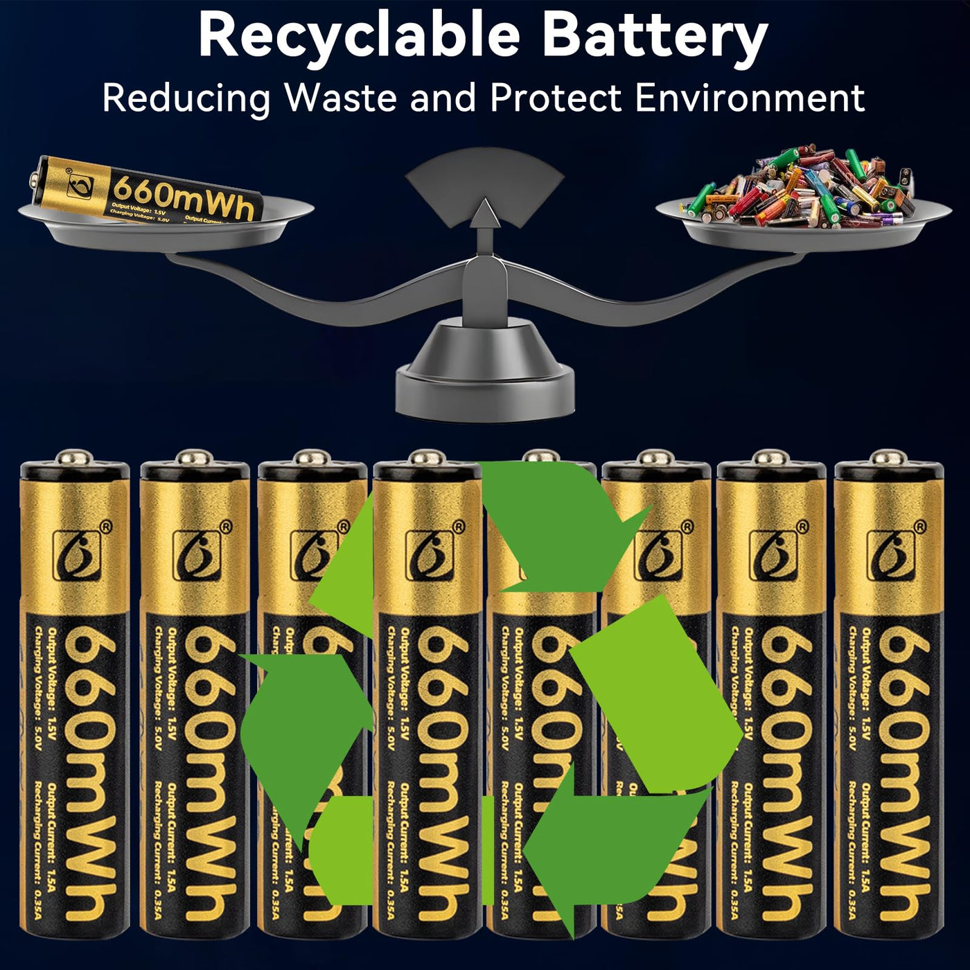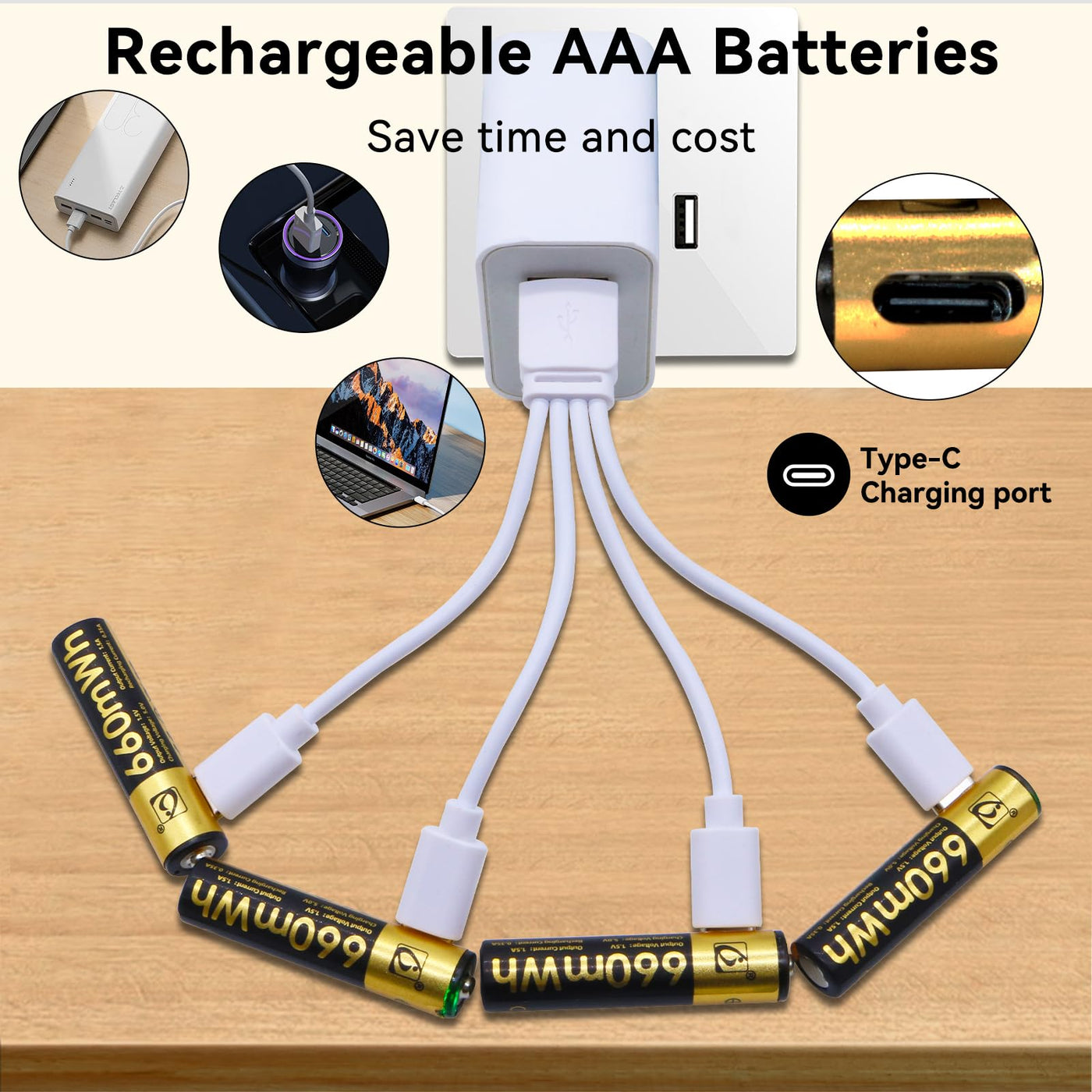 Tosiicop Aaa Rechargeable Lithium Batteries - 8 Pack Usb-C Rechargable Li-Ion Battery 1.5V 660Mwh With 4 In 1 Usb To Type-C Char
