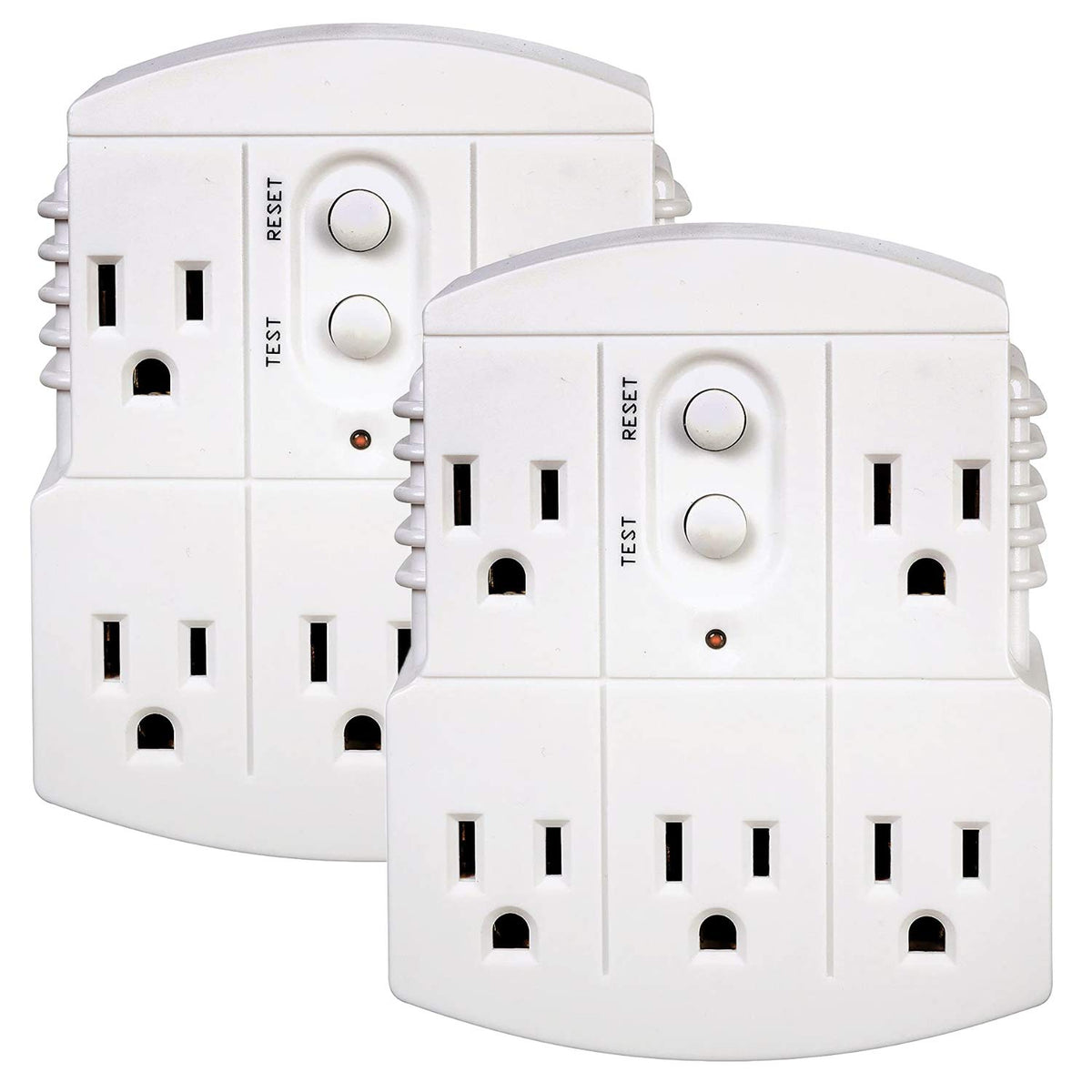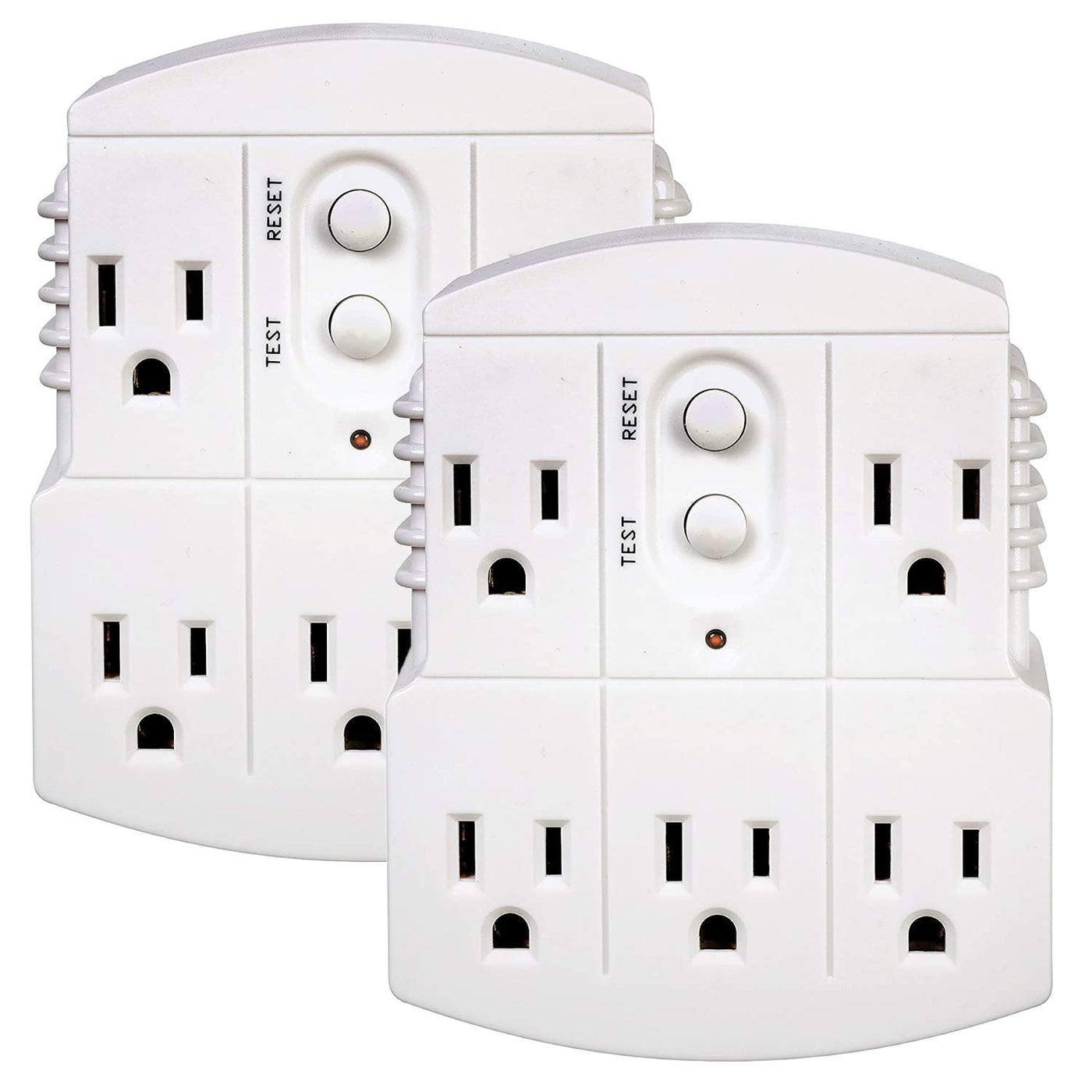 Tower Manufacturing 30440003 Auto Reset 15 Amp Grounded 3 Prong Gfci 5 Outlet Adapter, White [2 Pack]