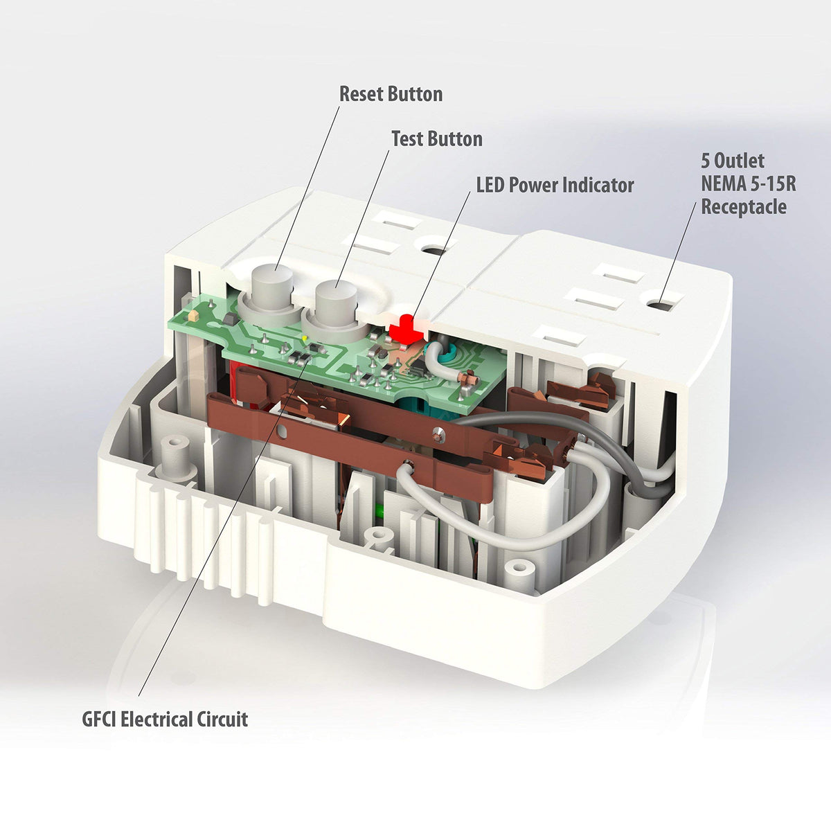 5 Outlet Adapter, 3-Wire Tower Manufacturing Model Model 30440003 5 Outlet Adapter, 3-Wire Can Be Used To Convert Any Standard 3-Wire Indoor Electrical Outlet Into A Ground Fault (Gfci) Protected Outlet. This Light Weight, Portable Product Can Be Used In The Home, Office, Bathroom, Vacation Cabin Or Workshop And Converts Traditional Two Electrical Safety Outlets To Five Gfci Protected Outlets. The Bright 'Red' Light Indicates When The Power Is 'On'. The Test And Reset Buttons Allow For Periodic Testing.