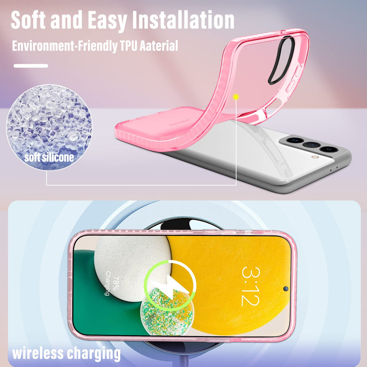 Q: Can I charge my Samsung Galaxy S21 wirelessly with this case on?A: Yes, the Toycamp case supports wireless charging, allowing you to charge your phone without removing the case.