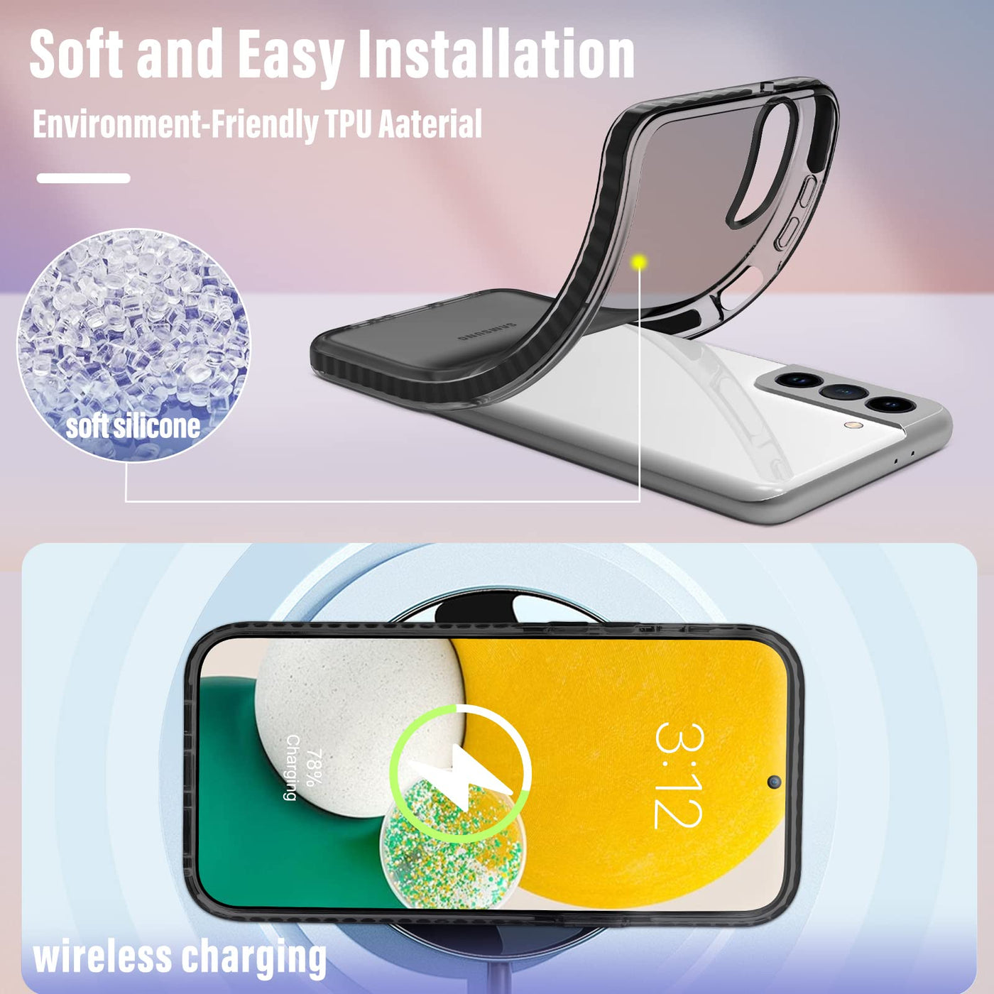Q: Can I charge my Samsung Galaxy S21 wirelessly with this case on?A: Yes, the Toycamp case supports wireless charging, allowing you to charge your phone without removing the case.